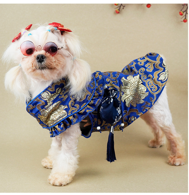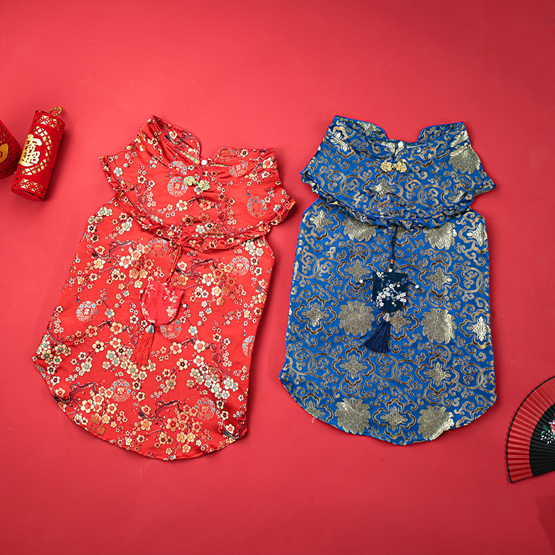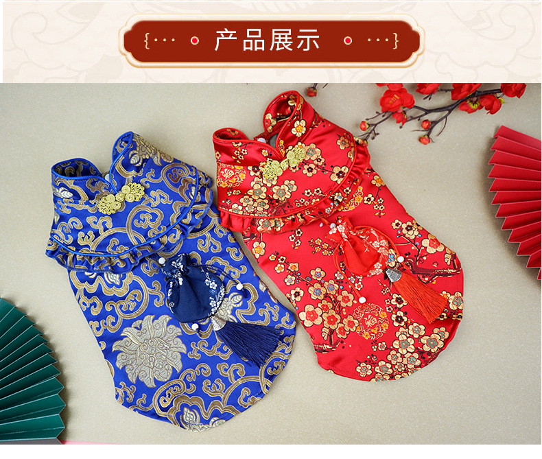 Mascota ropa de Año Nuevo año festivo suerte bolsa Tang traje cheongsam mediano y pequeño perro de peluche, ventas directas de la fábrica