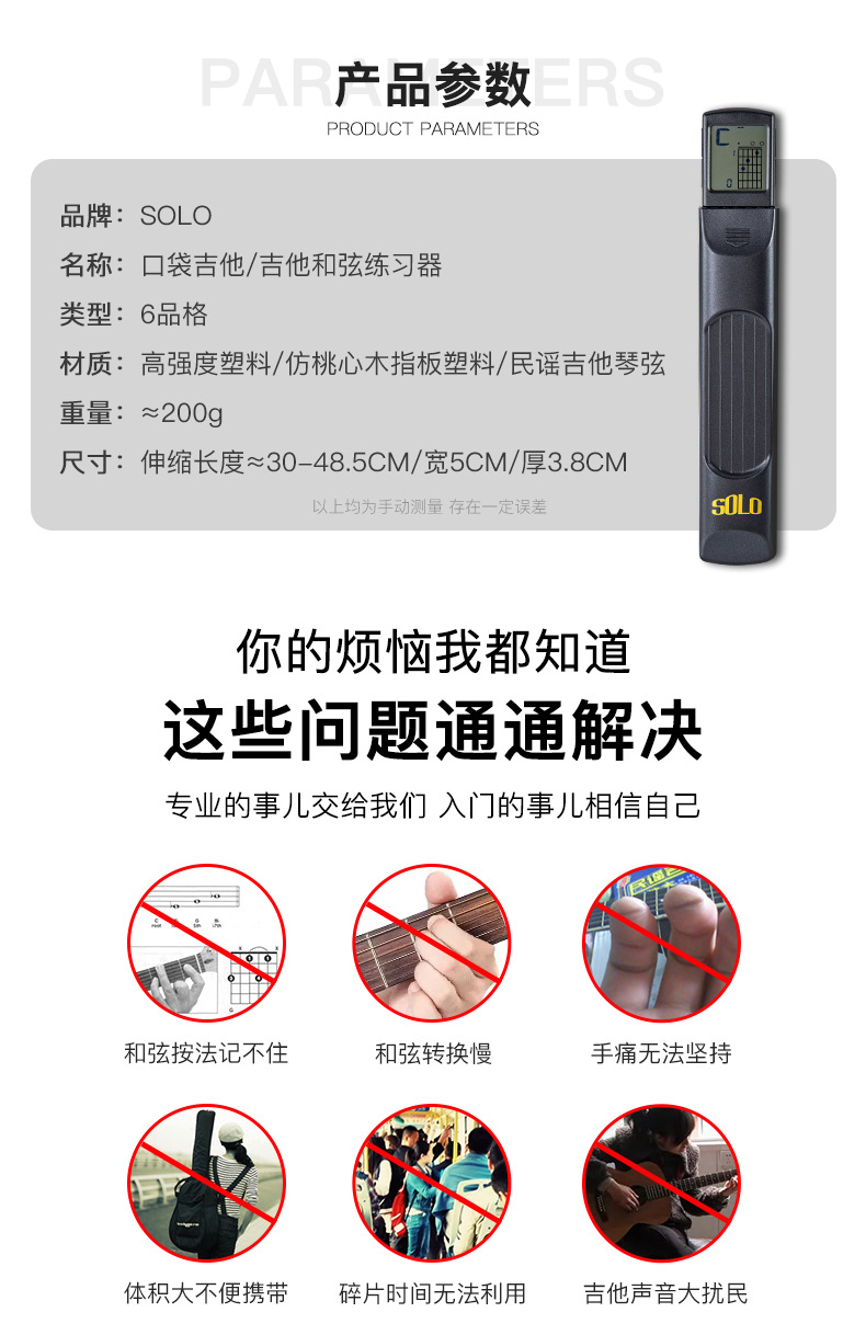 Solo bolsillo guitarra portátil acorde Trainer escalada celosía escala dedo tipo principiante entrada