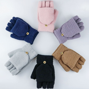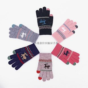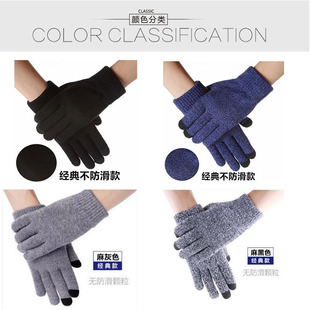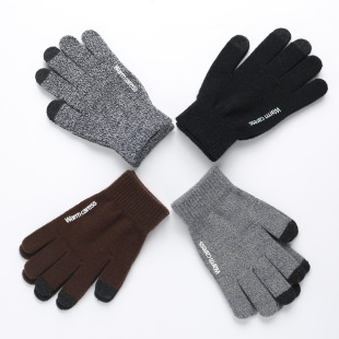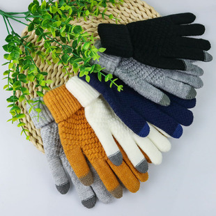 Guantes de punto de invierno transfronterizos hombres y mujeres estilo coreano cálido forrado de lana gruesa dedo completo pantalla táctil guantes de color mezclado