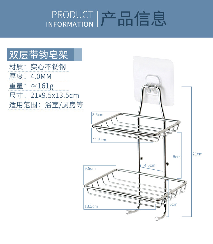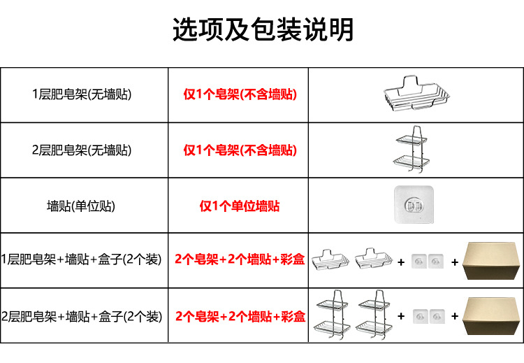 | Color | 1 capa jabón titular (sin etiqueta de la pared),1 capa de jabón rack + pasta + bolsa (1 paquete),Titular de jabón de 2 capas (sin pegatina de pared),2-capa jabón titular + etiqueta de la pared + caja (2 paquetes) |
