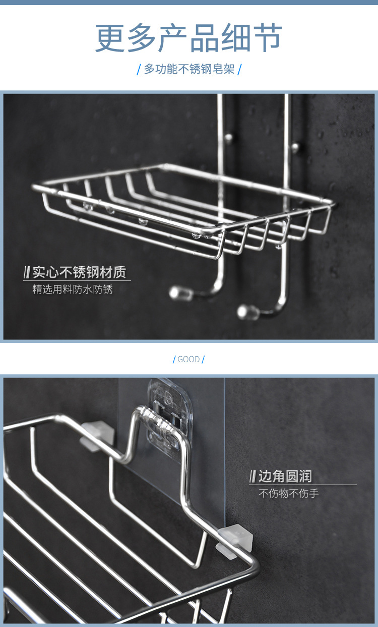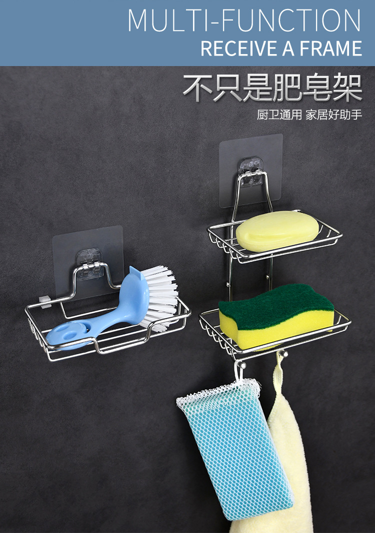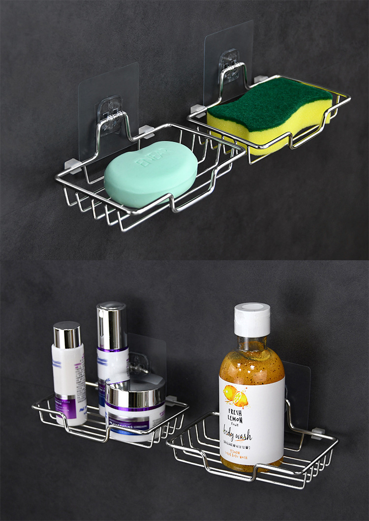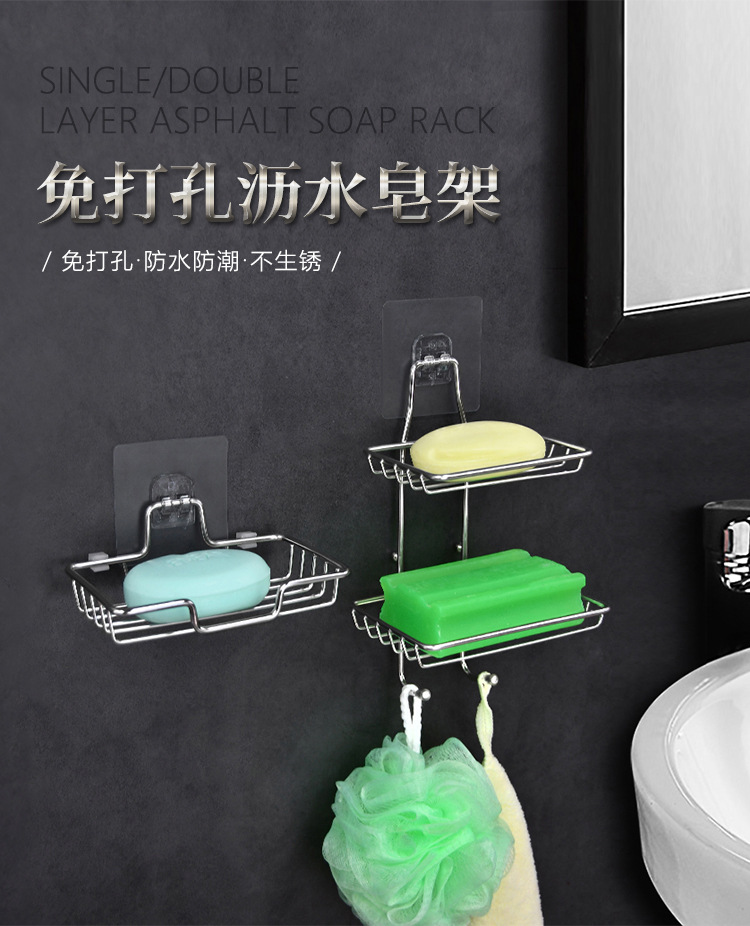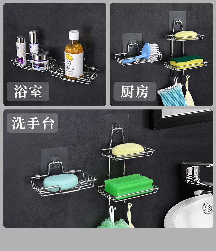 Estante de jabón de acero inoxidable baño drenaje ponche-caja de jabón libre baño estante montado en la pared estante de jabón al por mayor