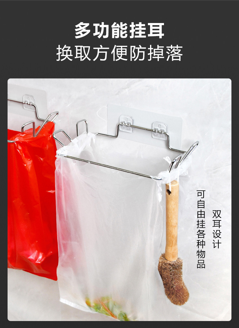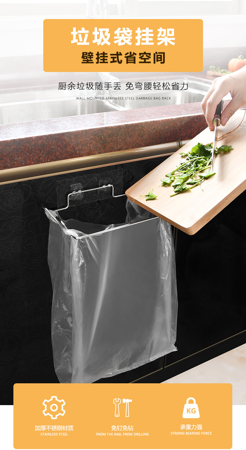 Bolsa de basura de acero inoxidable rack de cocina sin perforar bolsa de basura estante mágico pegatinas sin costuras bolsa de basura multifuncional
