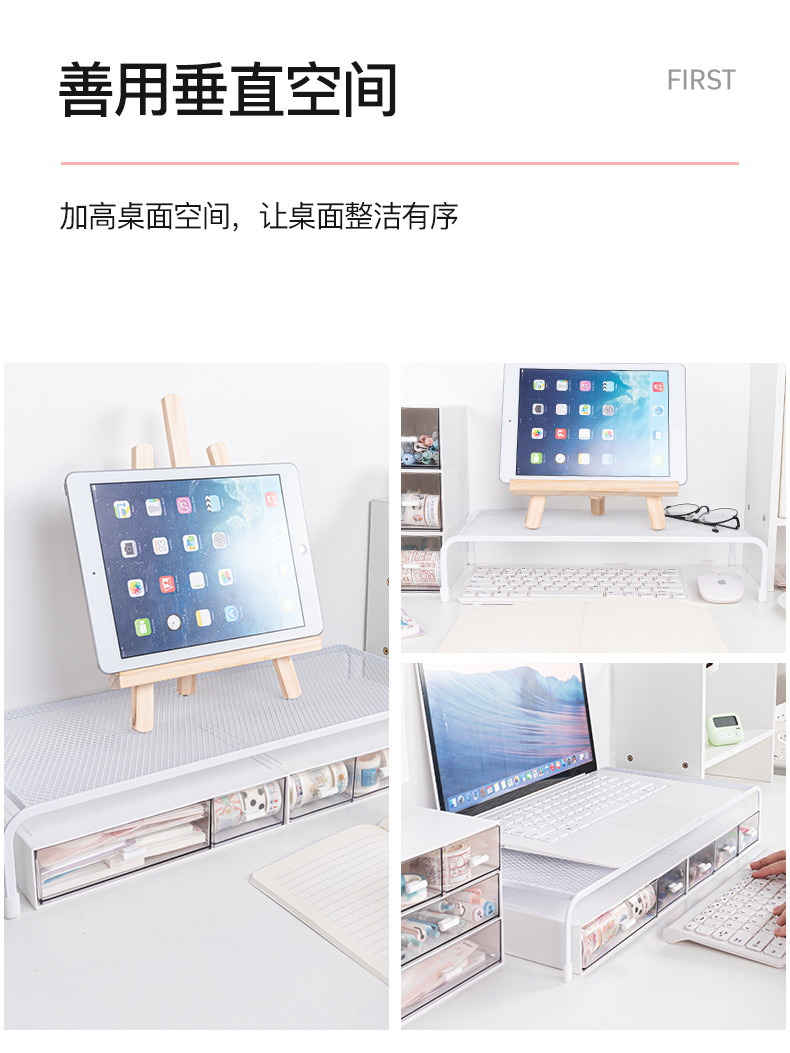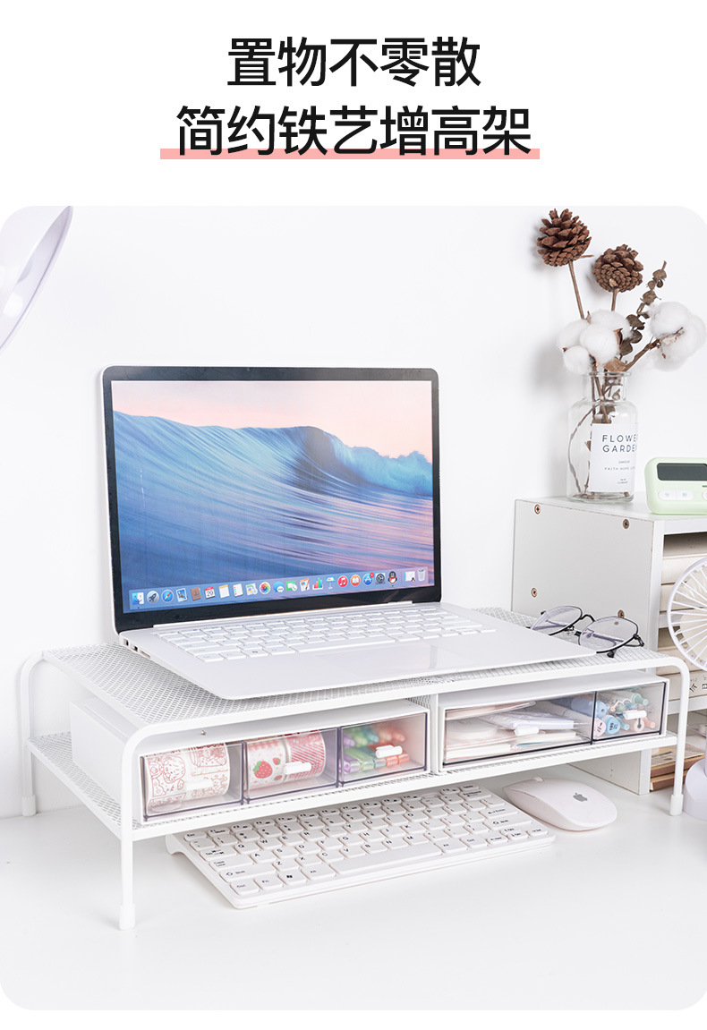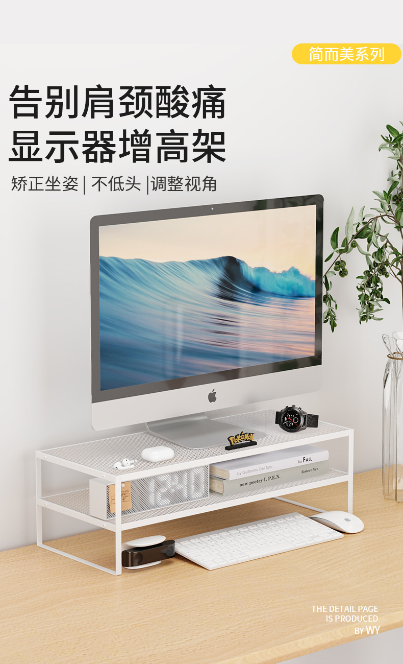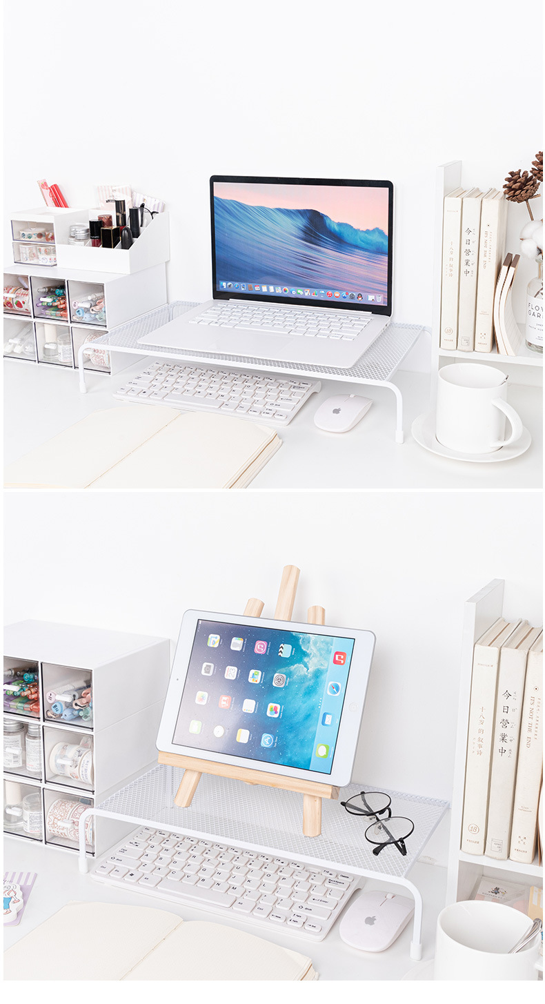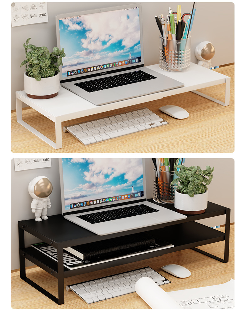 Organizador de almacenamiento minimalista para escritorio de dormitorio con soporte elevado para computadora, estante elevador para monitor de oficina sin instalación.