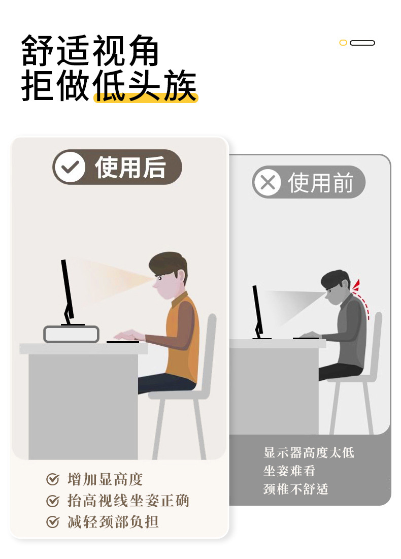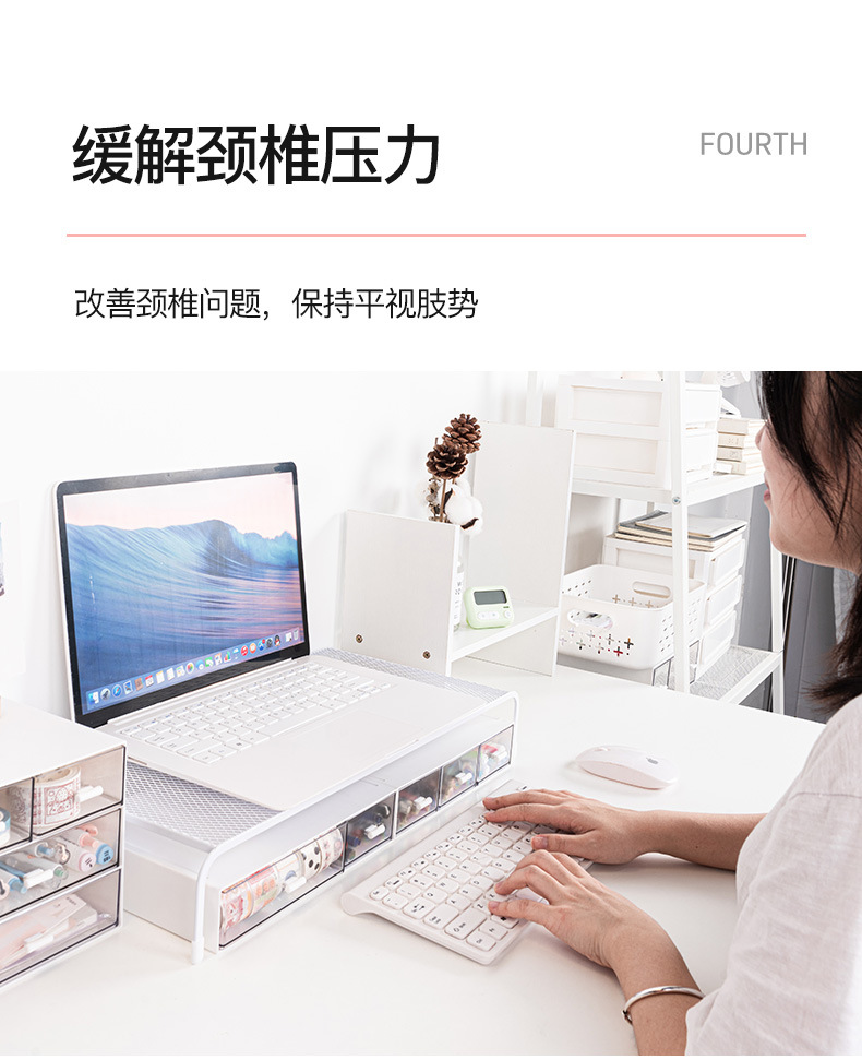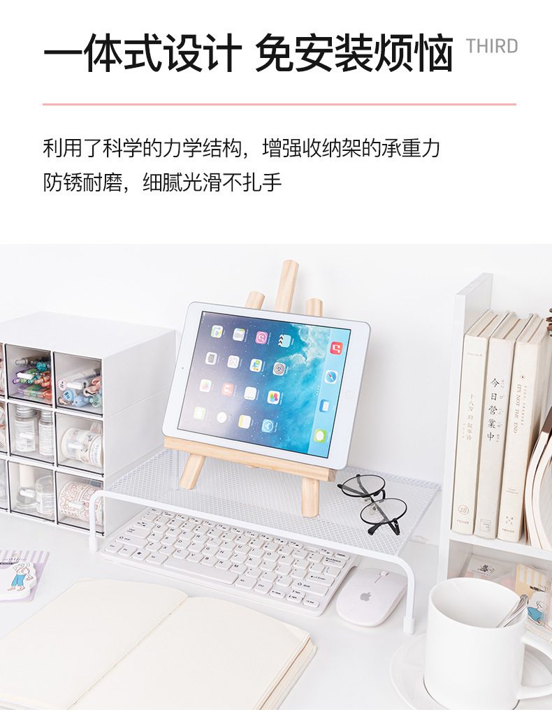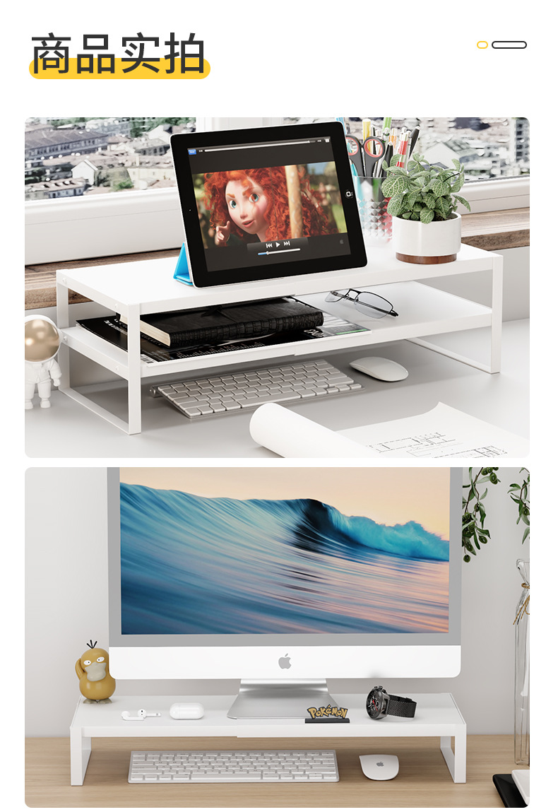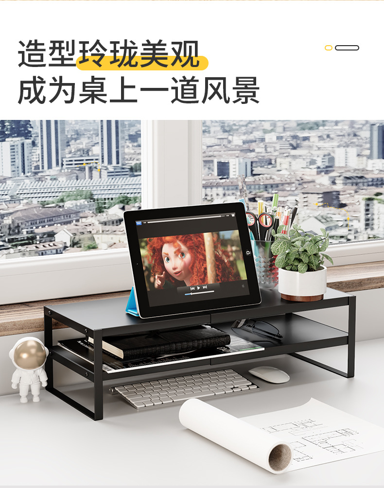 Organizador de almacenamiento minimalista para escritorio de dormitorio con soporte elevado para computadora, estante elevador para monitor de oficina sin instalación.