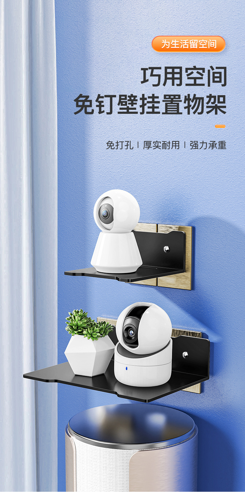 Pared de perforación libre de almacenamiento de rack proyector Cámara soporte de metal hogar sala de estar de pared rack de almacenamiento