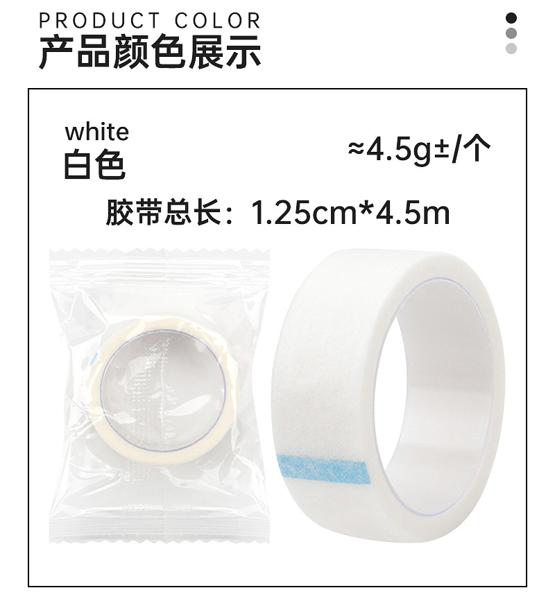 Cinta de aislamiento de pestañas postizas injertadas al por mayor pequeña cinta de color no tejida de 4,5 m cinta de PE no tejida