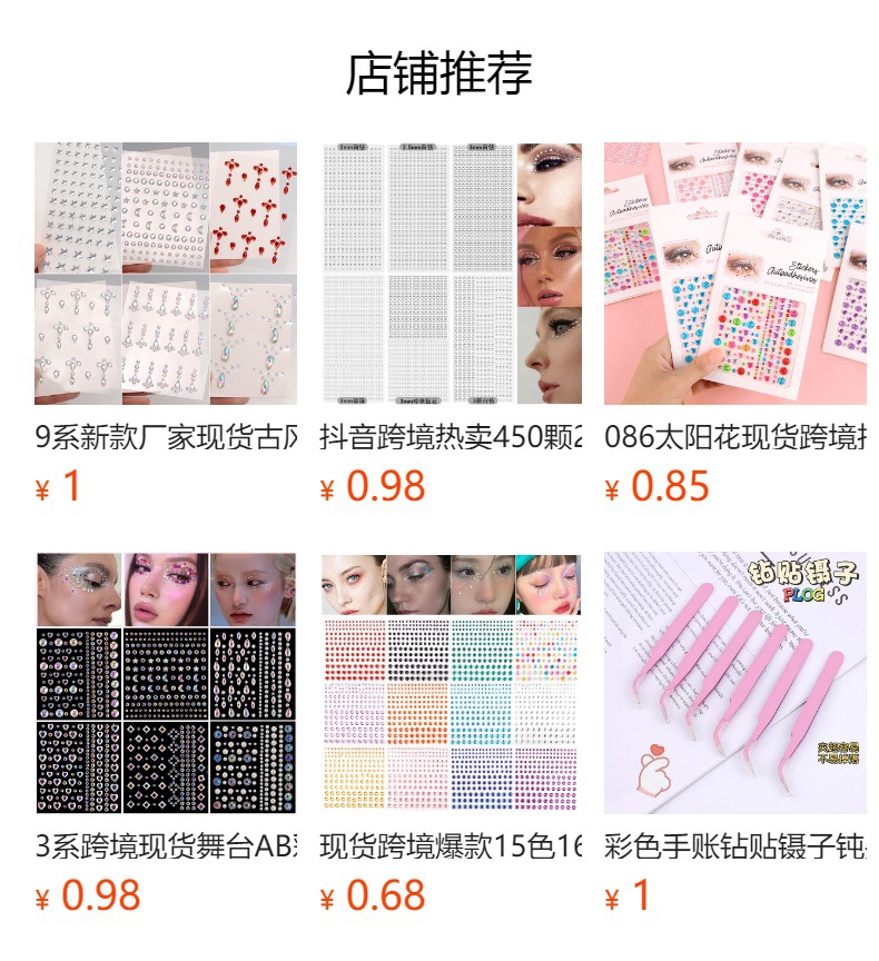 Cross-border Amazon populares 15 colores 900 pegatinas de cara pegatinas de cristal etapa belleza maquillaje diamante acrílico diamante pegatinas