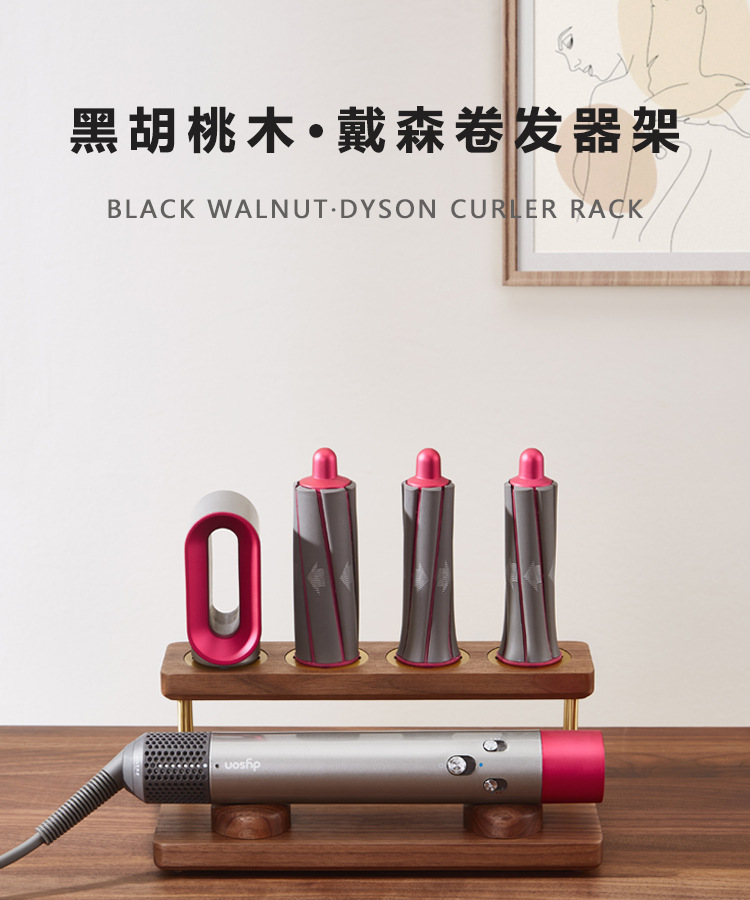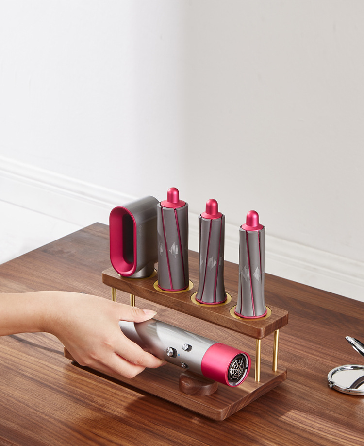Nogal negro Dyson rizador de pelo rack de almacenamiento vertical de estilo de pelo encimera soporte de almacenamiento 4-cabeza Cruz
