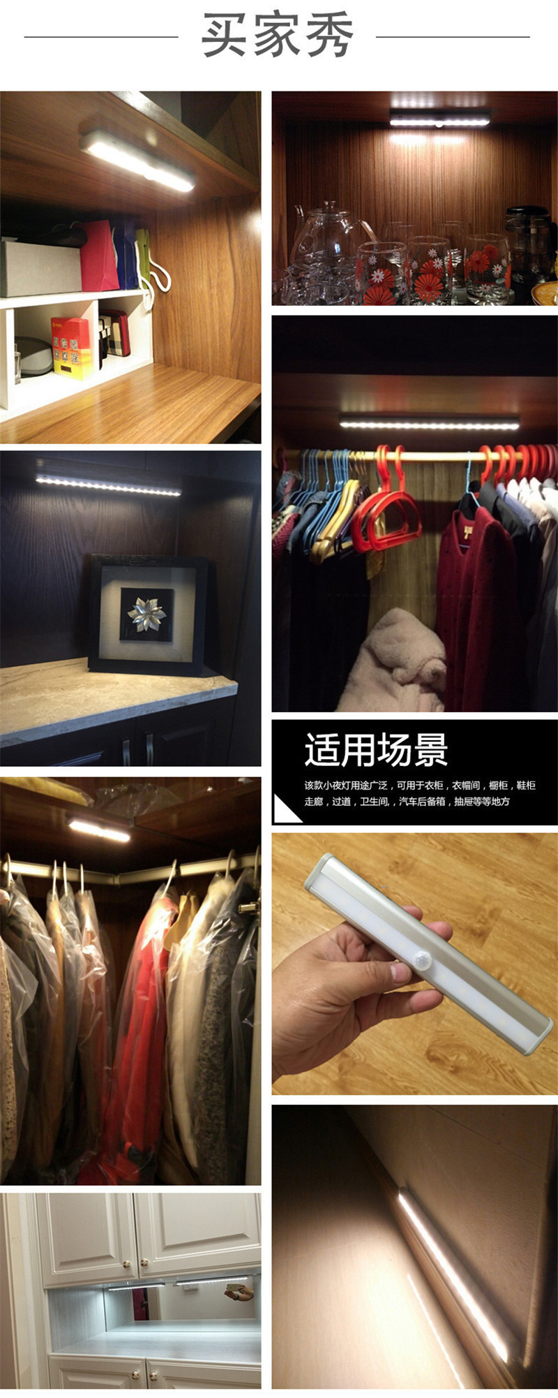 Tira inteligente LED recargable luz del sensor del cuerpo humano gabinete de pared luz del Gabinete batería armario luz USB Luz de la noche del pasillo