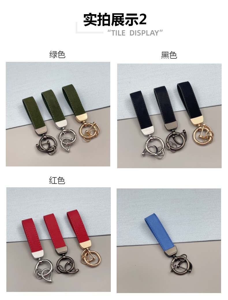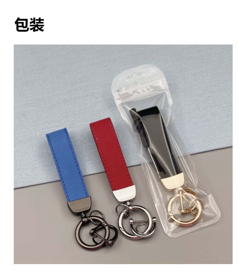 Llavero de coche de gamula transfronterizo anillo de llavero anti-pérdida de hardware logotipo en relieve llavero de cuero al por mayor