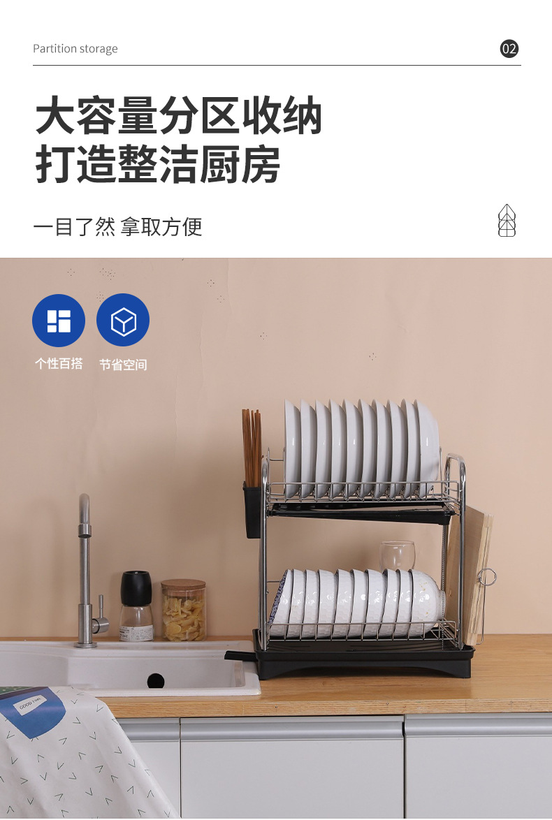 Estante de doble capa de drenaje de la cocina estante de almacenamiento de múltiples capas de gran capacidad de drenaje plato estante de almacenamiento y acabado de la cubierta de la olla