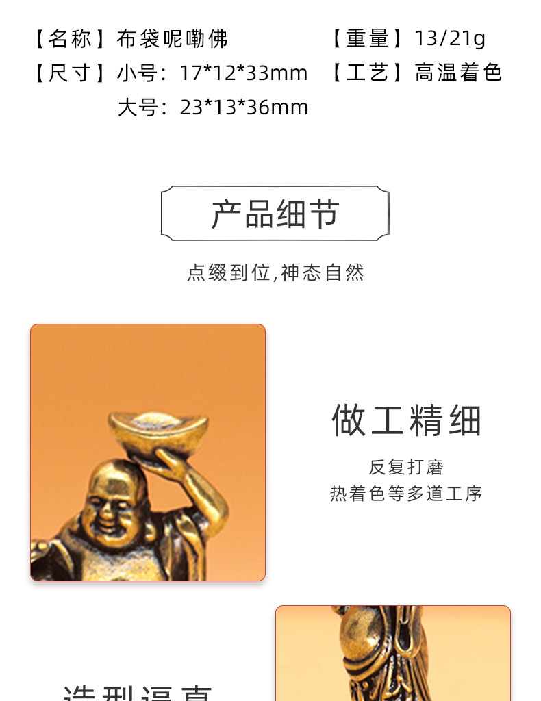 Maitreya Buda colgante nacional moda latón Ruyi lingote antiguo Buda estatua miniatura adornos miniatura tallada Año Nuevo pequeño regalo adornos