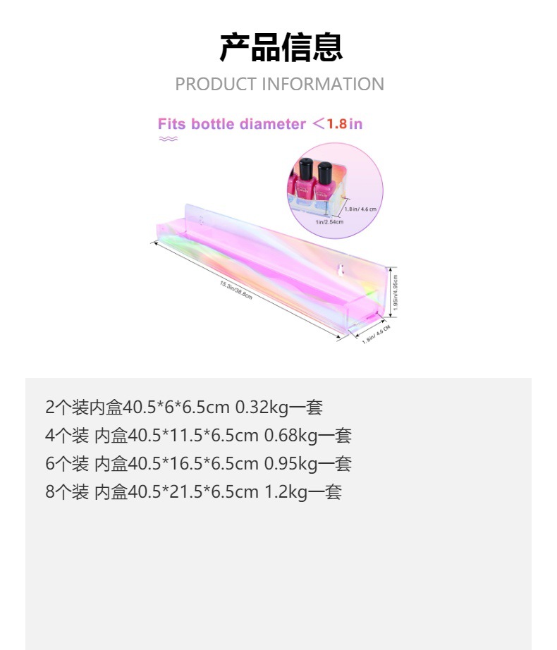 Estante de pared de acrílico colorido transfronterizo esmalte de uñas manicura pantalla hecha a mano Almacenamiento de muñeca estantería colgante de pared