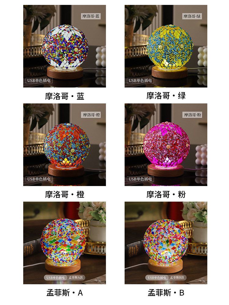 Mosaico transfronterizo luz de noche barroco romance y libertad Bohemia luz de noche creativa lámpara de mesa decorativa de vidrio