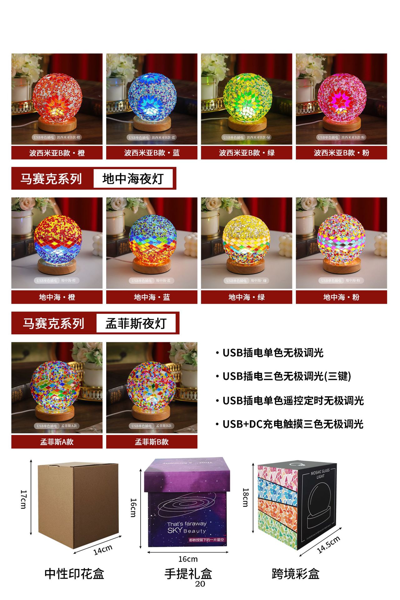 (Caja de color transfronteriza) USB carga táctil tres colores atenuación infinita