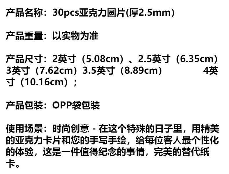| Color | 2 pulgadas hoja redonda de acrílico/30PCs,2,5 pulgadas hoja de acrílico redonda/30PCs,Hoja de acrílico redonda/30PCs de 3 pulgadas,3,5 pulgadas hoja de acrílico redonda/30PCs,4 pulgadas ronda hoja de acrílico/30PCs |