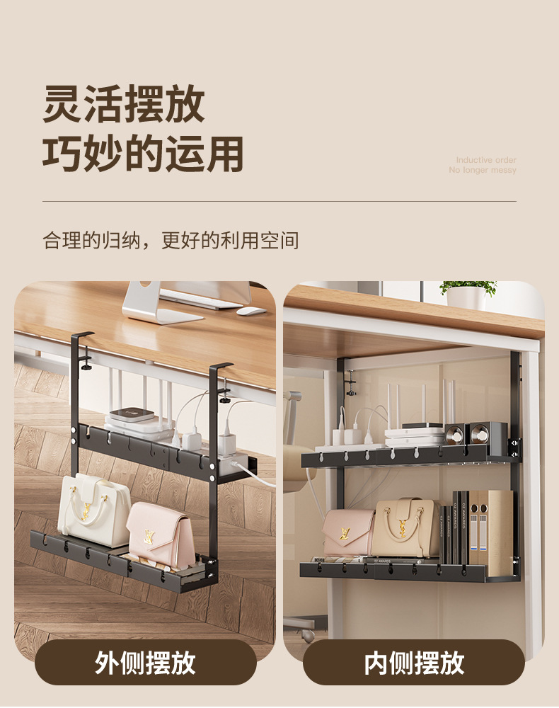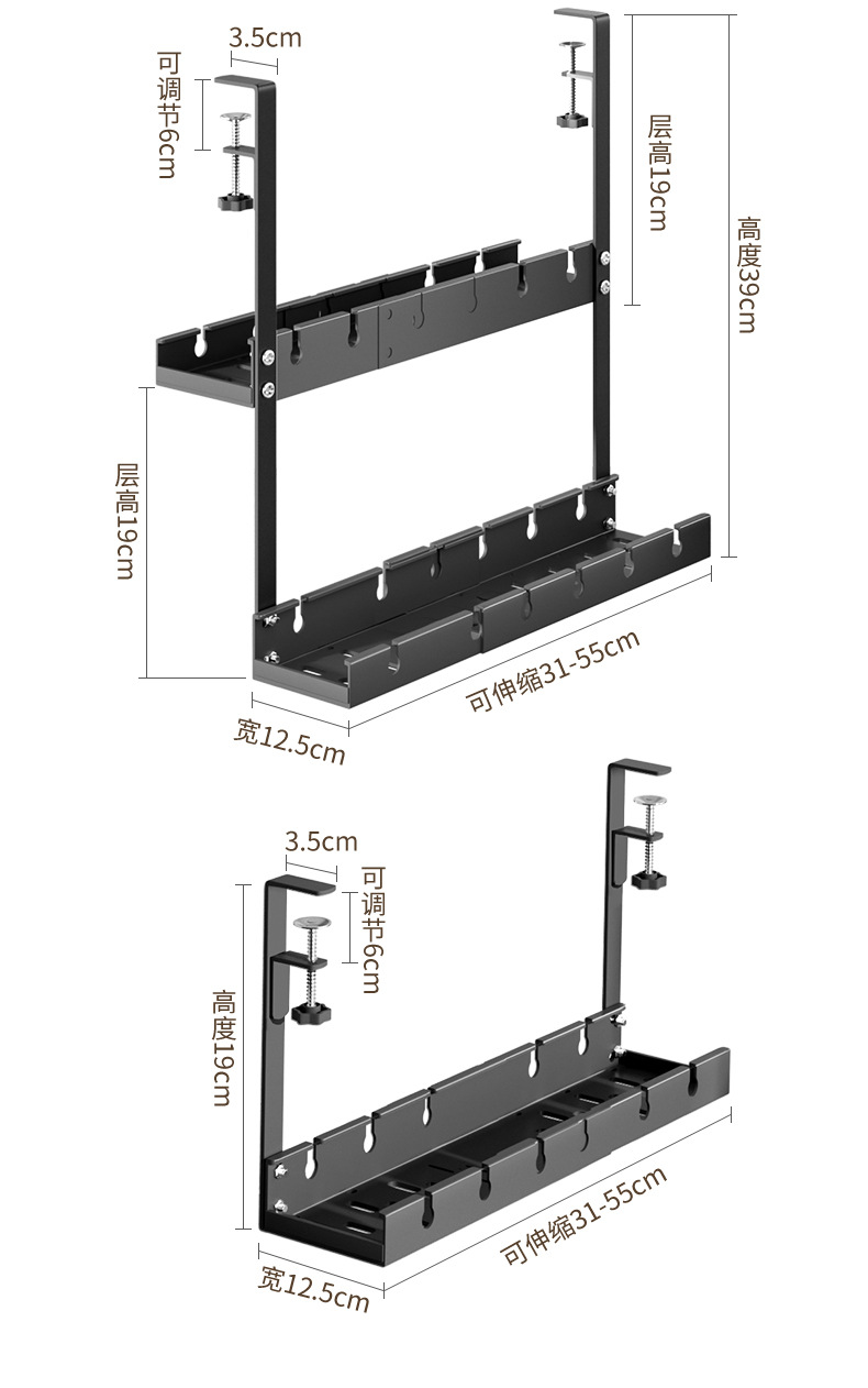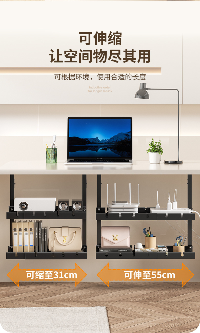 De doble capa retráctil debajo de la Mesa rack de cables Escritorio de Oficina Luz gato Set-Top Box rack plug-in de cable router rack de almacenamiento