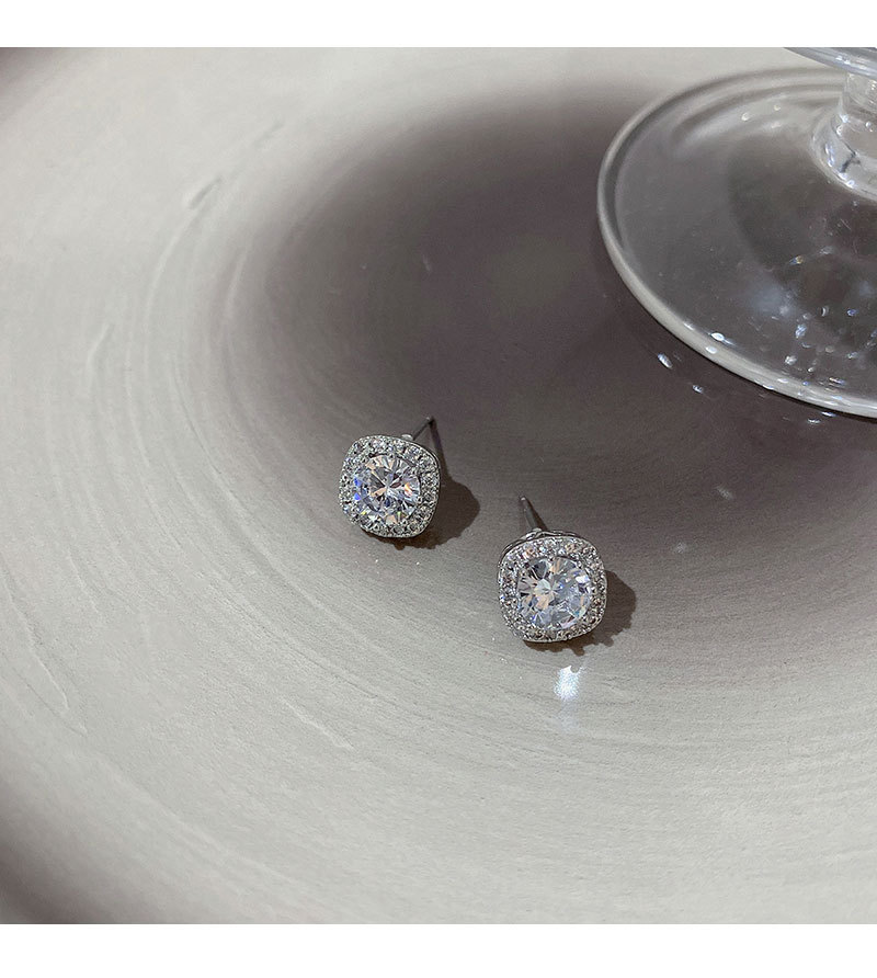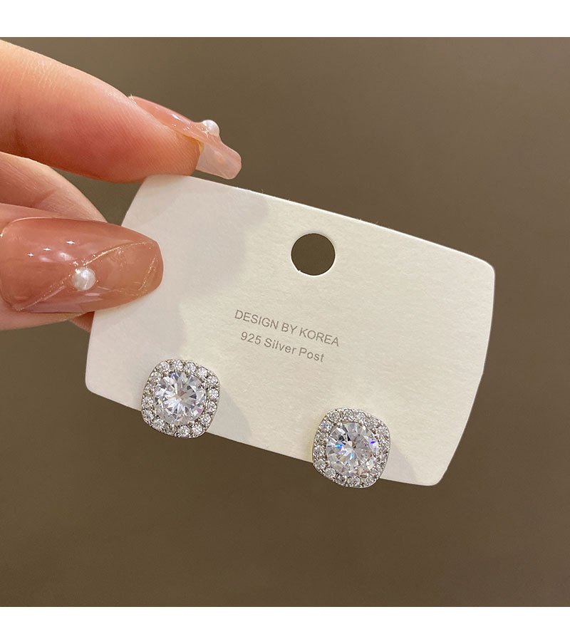 925 aguja de plata micro incrustaciones de circón Luz de lujo Super flash Stud pendientes de las mujeres de alto grado temperamento simple pendientes cuadrados pendientes al por mayor