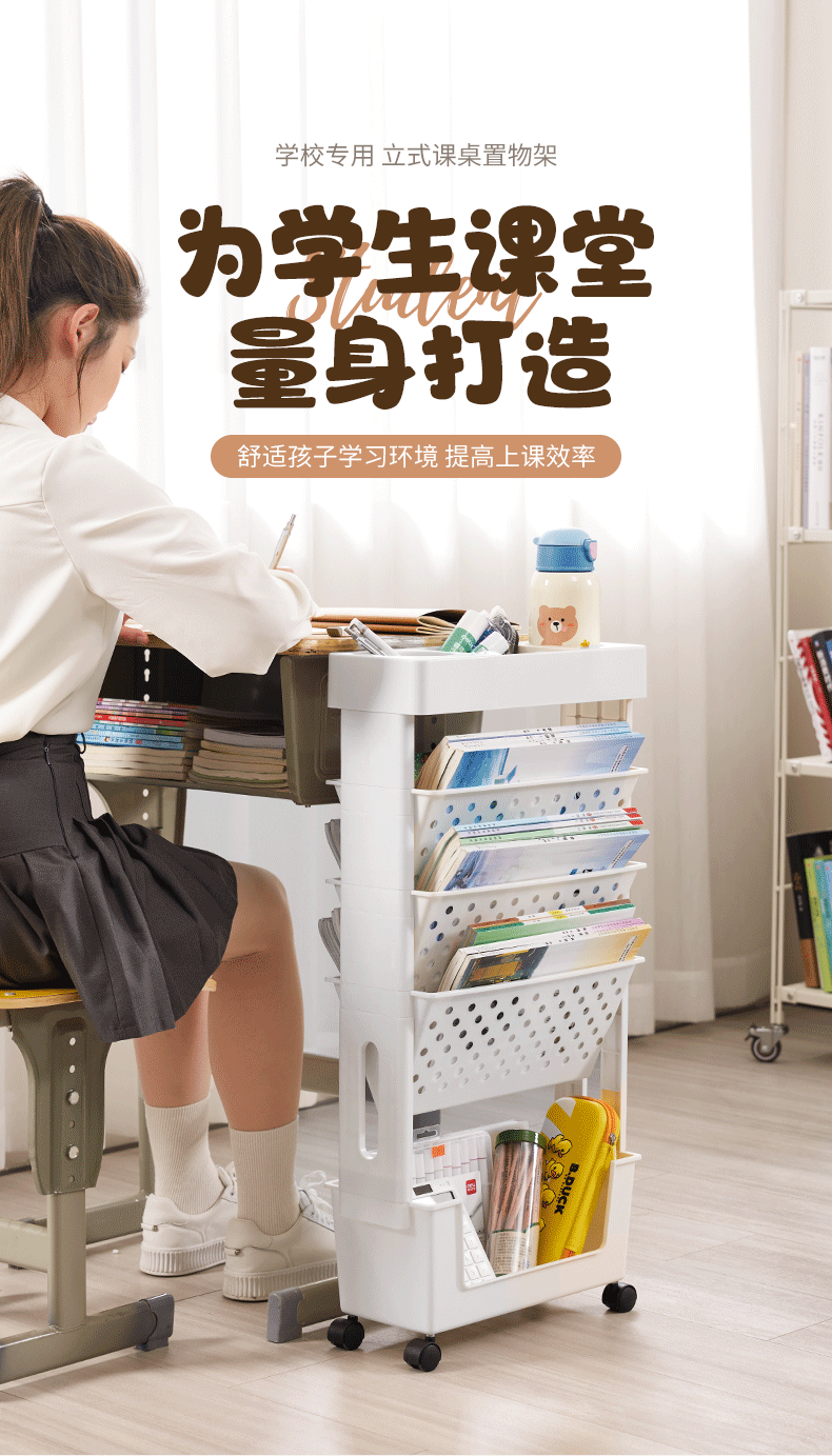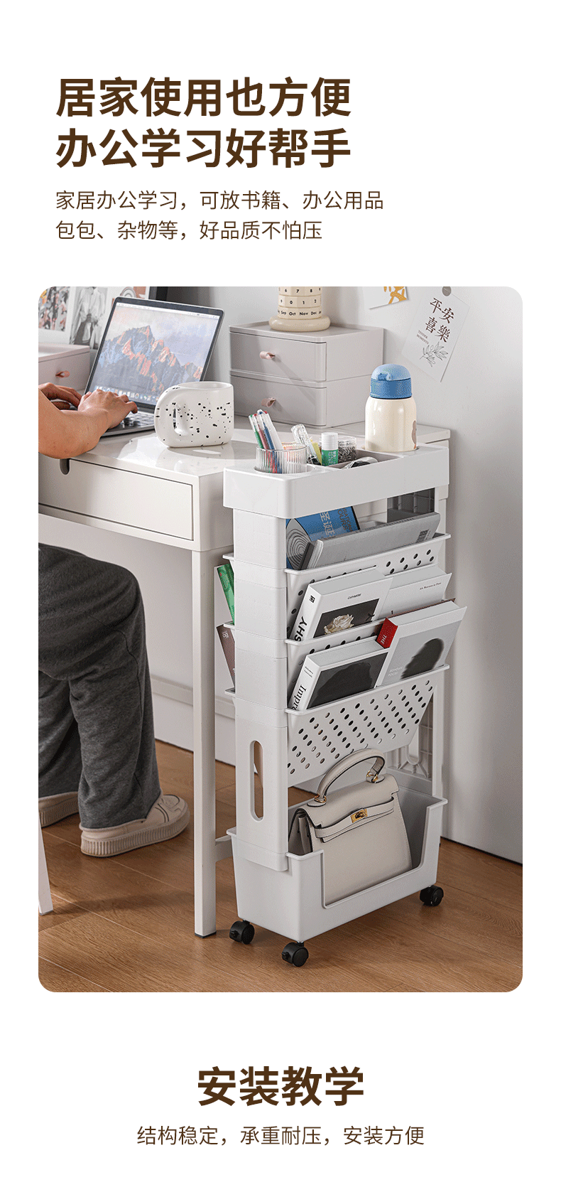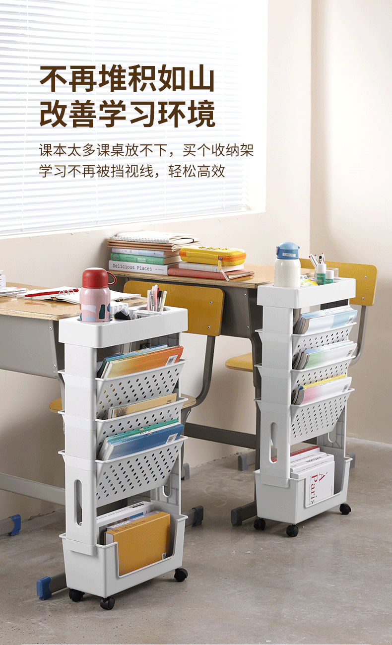 Simple mesa lateral piso móvil estantería estudiante libro Oficina de almacenamiento artefacto multifuncional estante de almacenamiento con rodillo