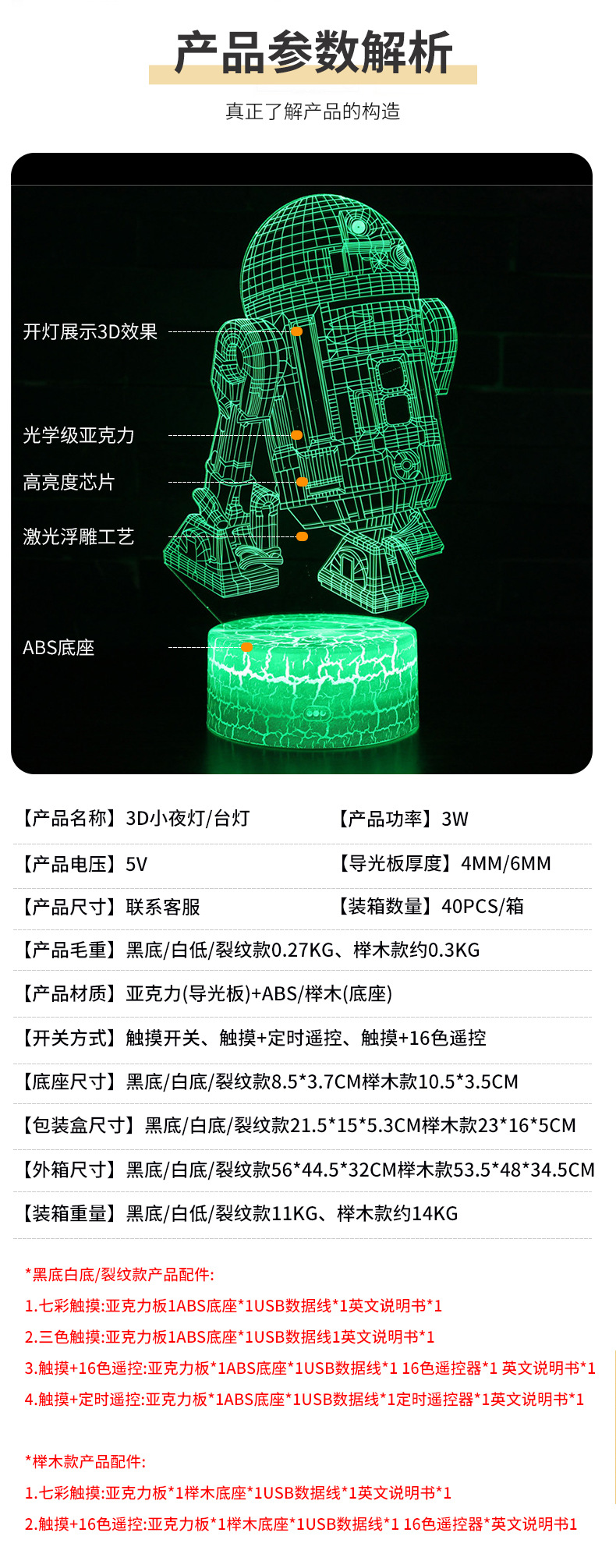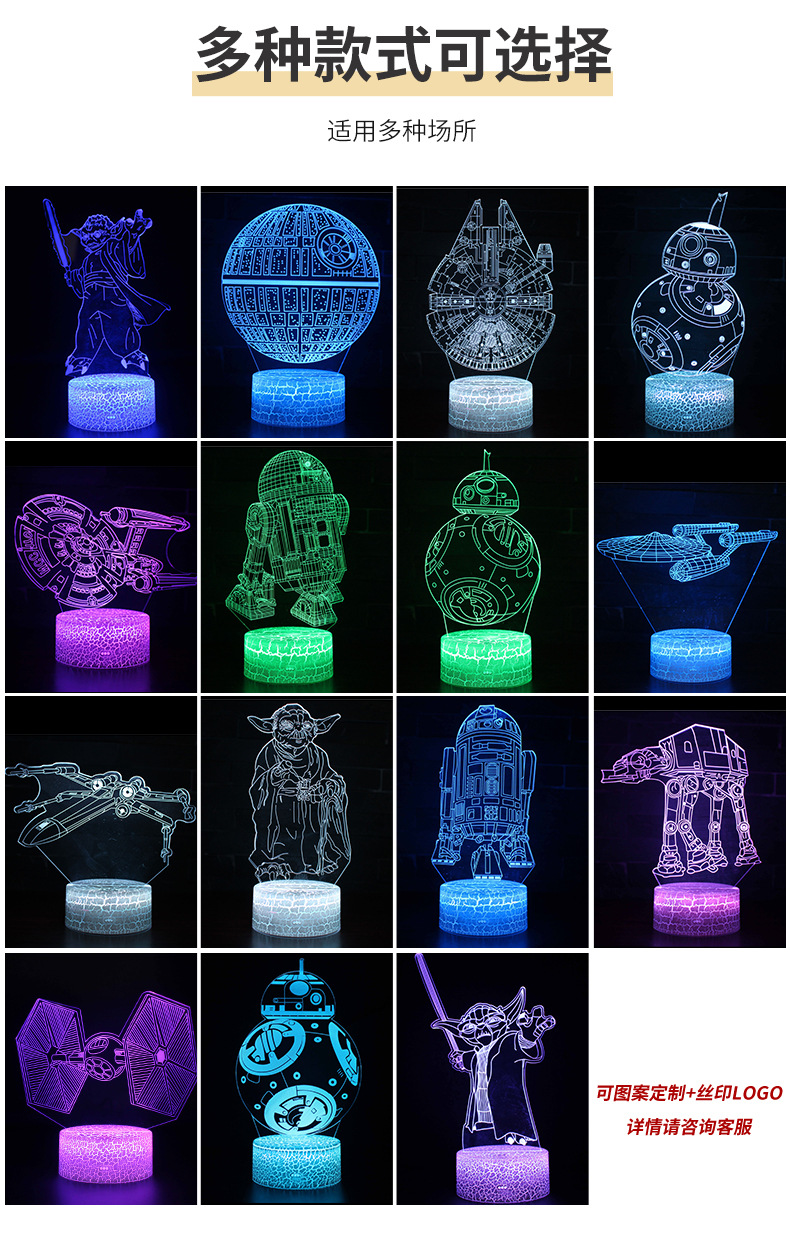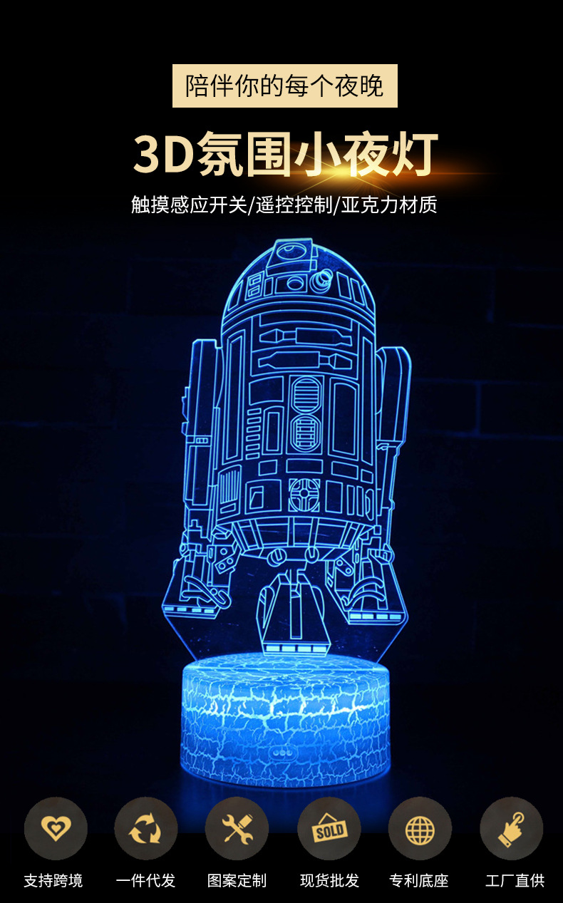 Transfronteriza Star Wars serie 3D colorido táctil lámpara de mesa Luz de la noche LED regalo creativo luz visual