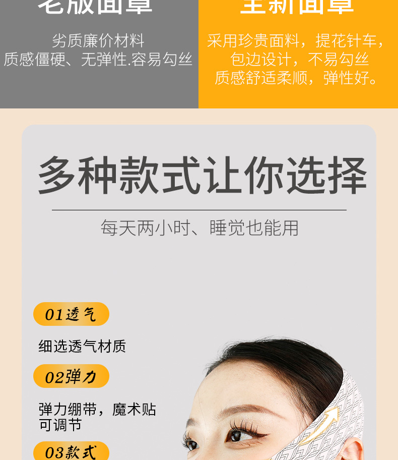 En stock alta máscara facial elástica para adelgazar vendaje V elevación de la cara y ajuste de la barbilla doble patrón francés de elevación caída