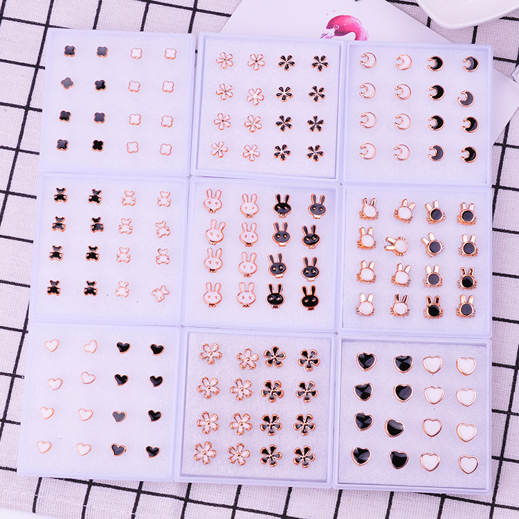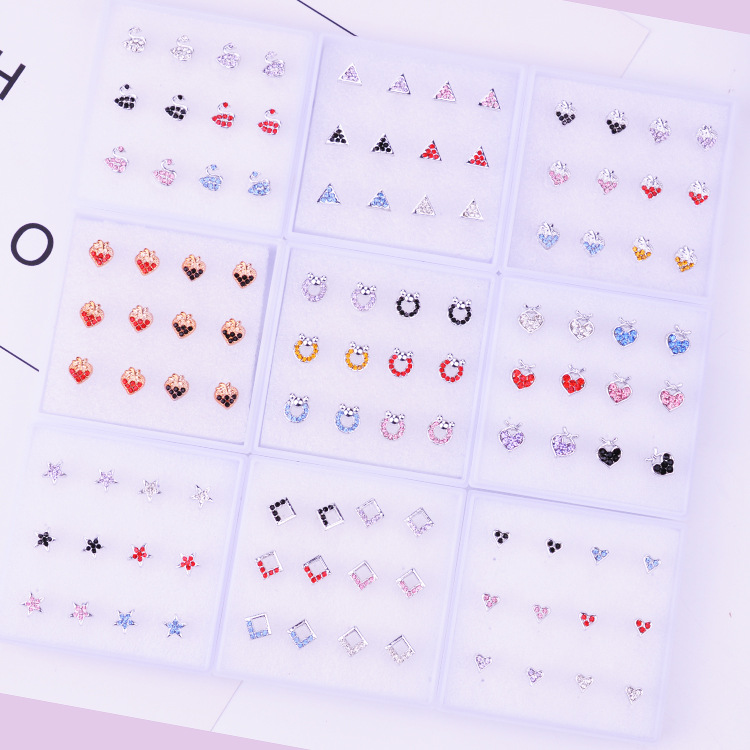 120 conjuntos de aretes de amor, aretes de resina de diamantes de temperamento femenino, joyas de plástico, joyería de Yiwu al por mayor