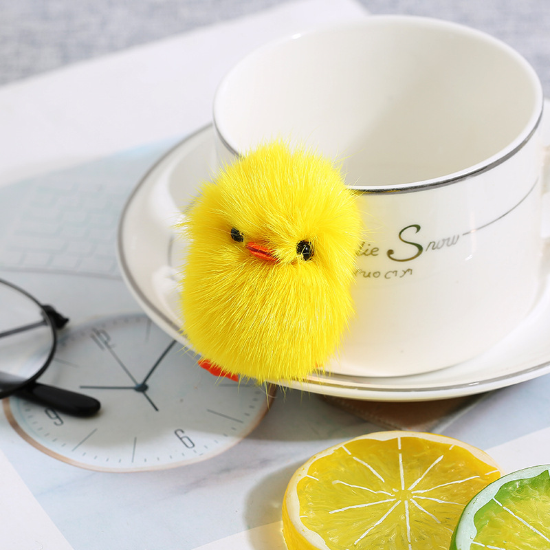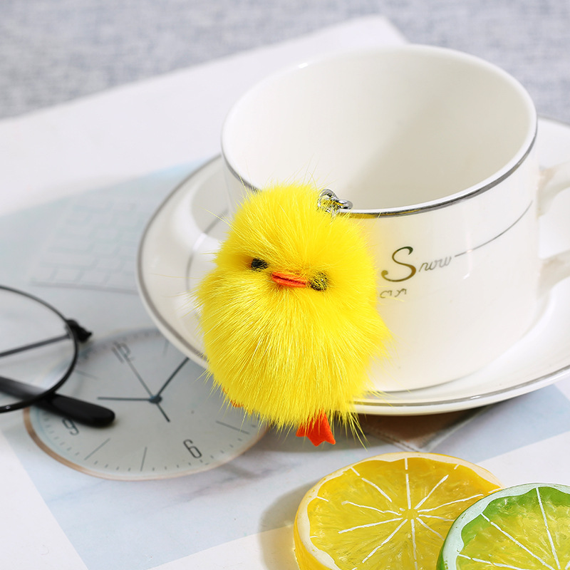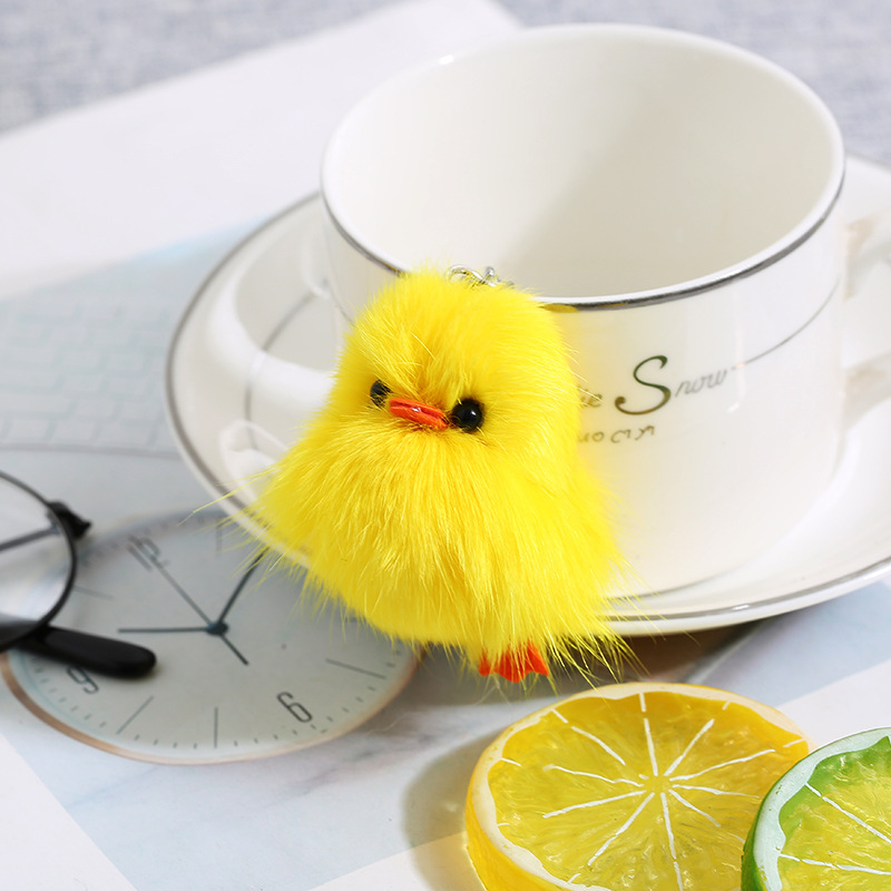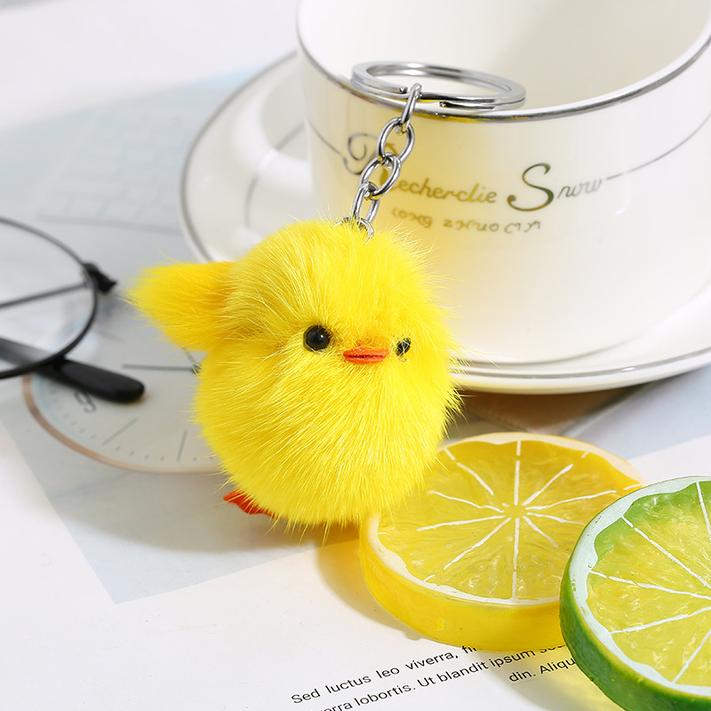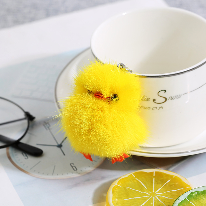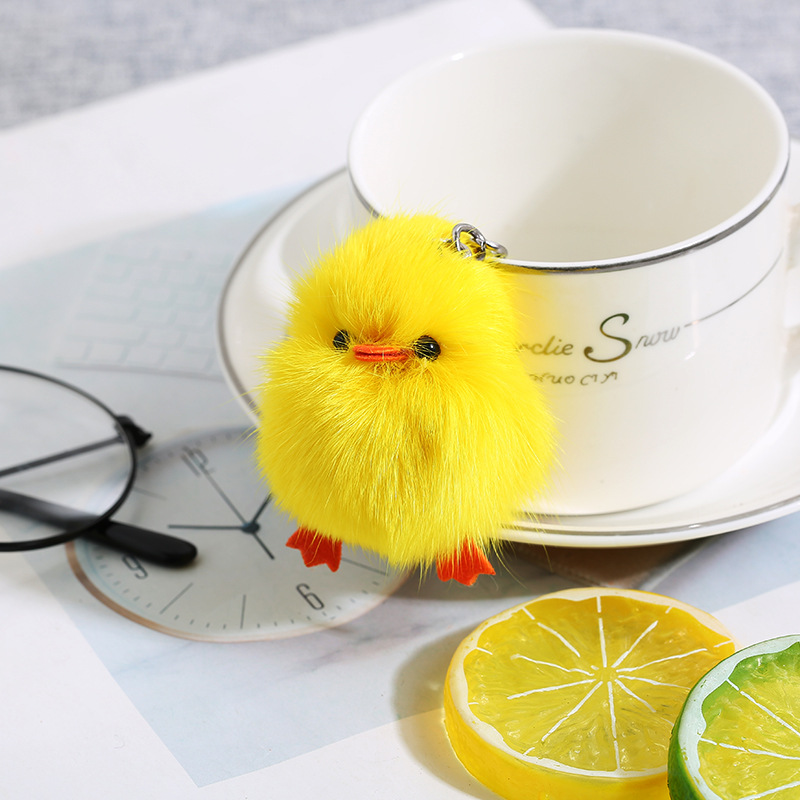 Ins piel de zorro real pequeño pato amarillo felpa llavero colgante niñas bolso adornos clave (buena calidad)