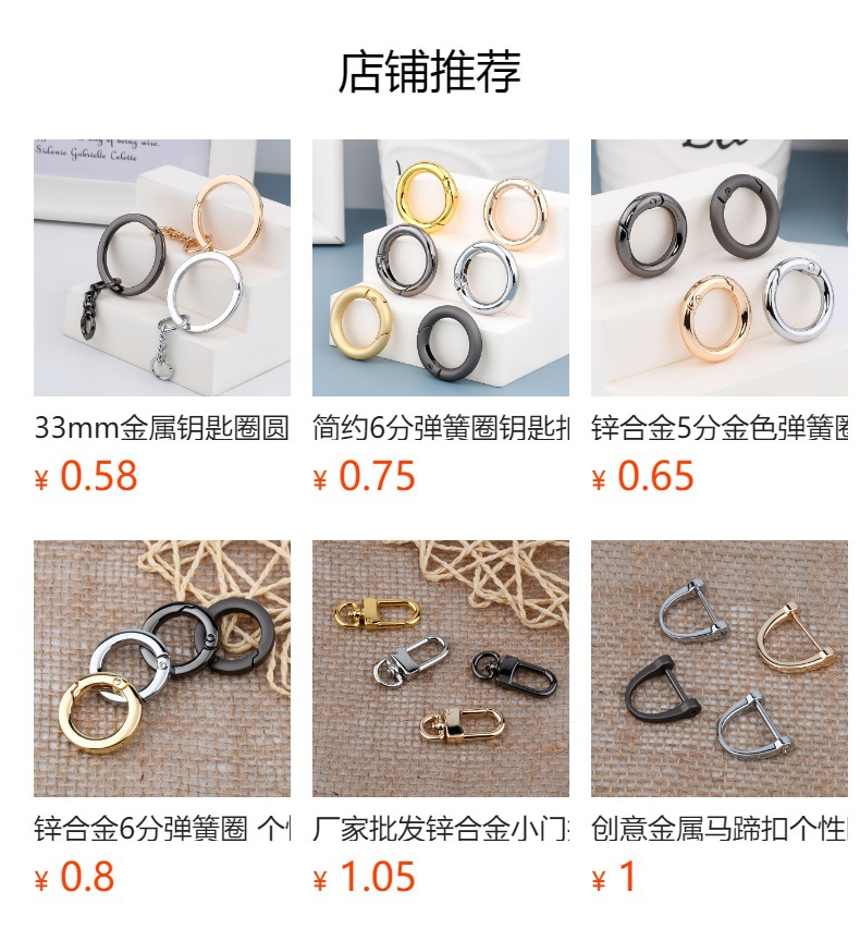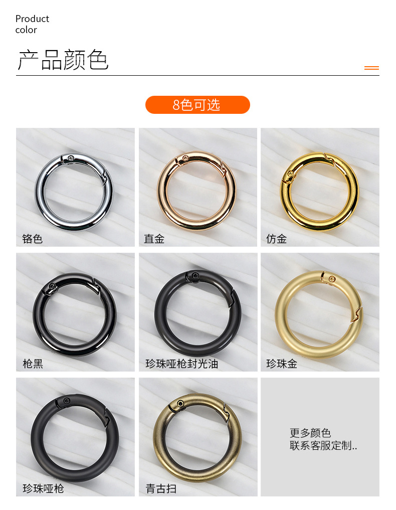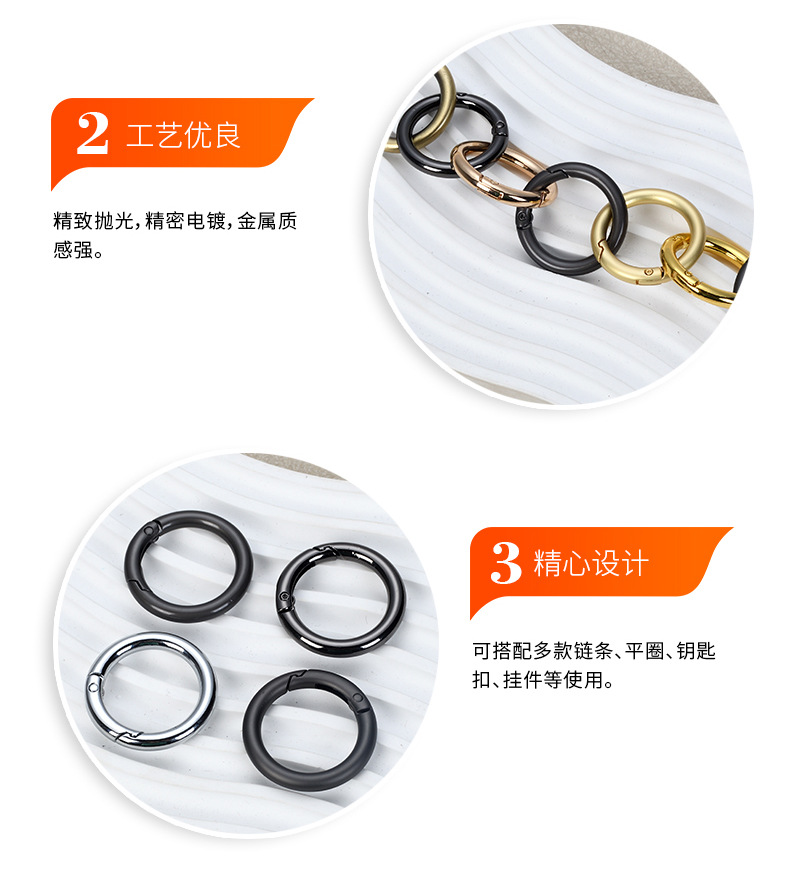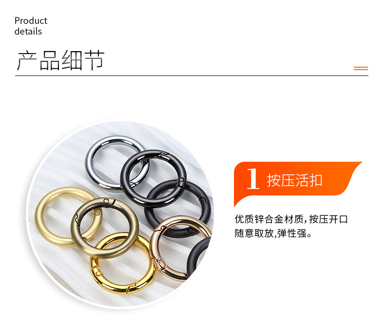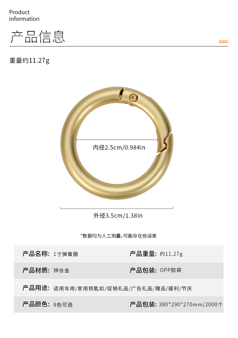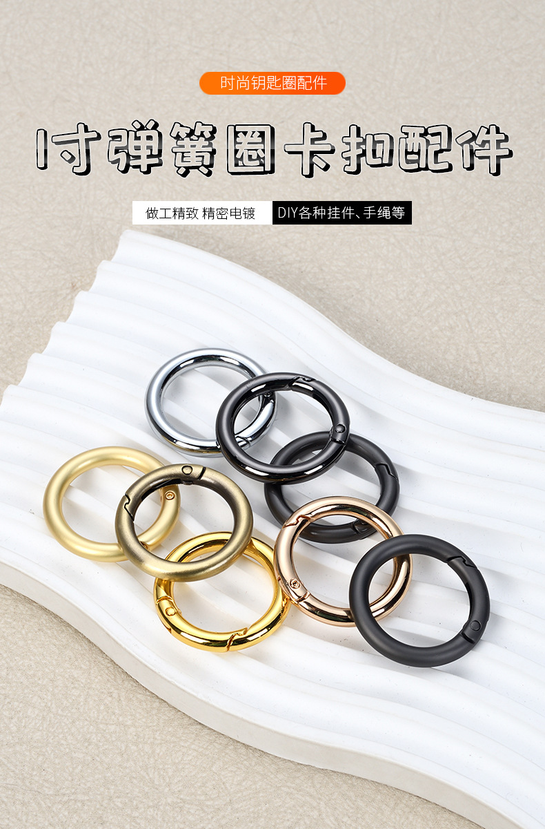 Accesorios de bolsa de oro 35mmK creativo anillo abierto hebilla anillo de resorte de metal de 1 pulgada anillo móvil hebilla colgante clave