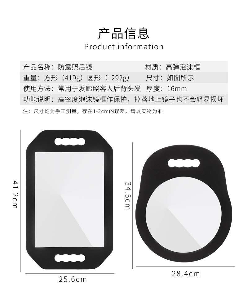 Espejo cosmético de belleza y peluquería ESPEJO redondo de espuma espejo cuadrado barbería resistente a las caídas espejo trasero especial espejo trasero resistente a las caídas HD