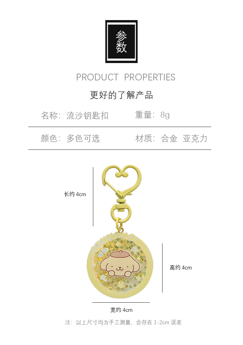 Creativa Sanrio Quicksand lentejuelas llavero ins estilo colgante chica corazón hecho a mano lindo acrílico agitar pieza