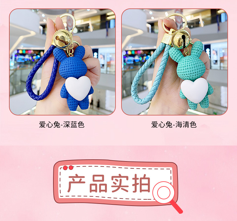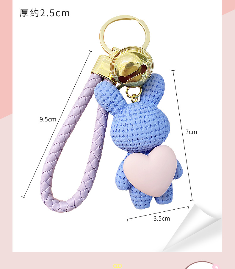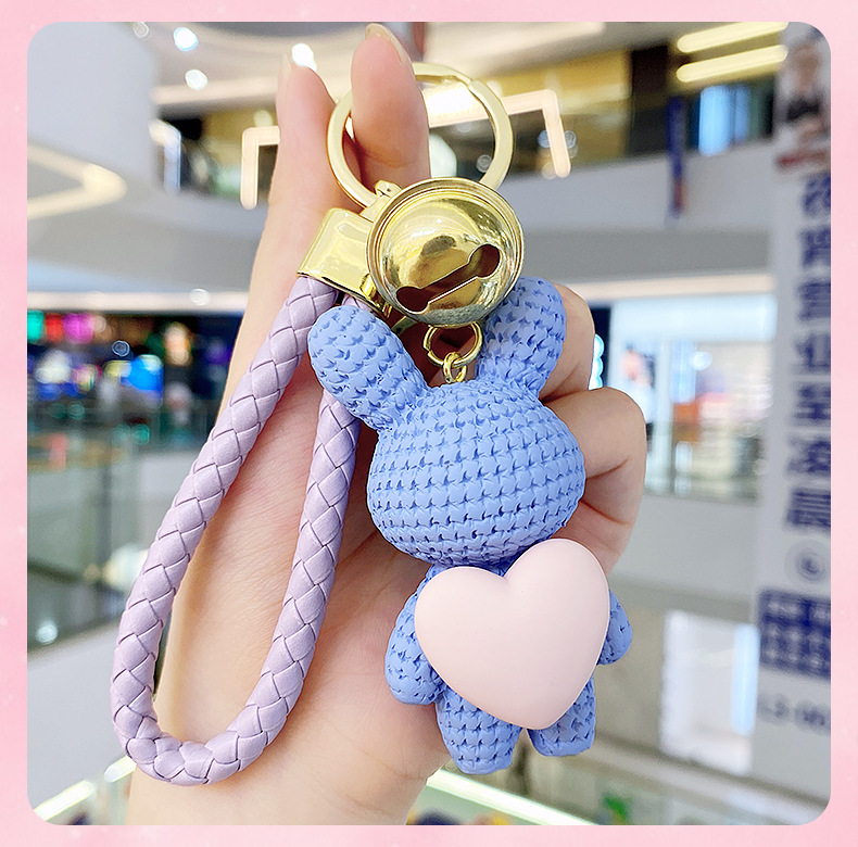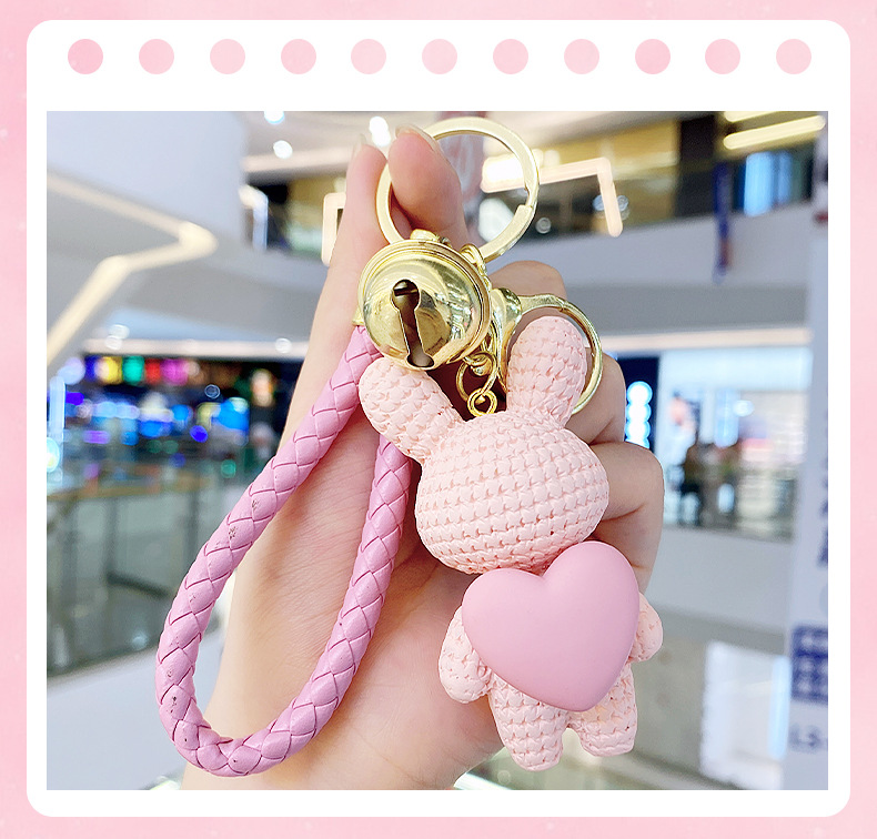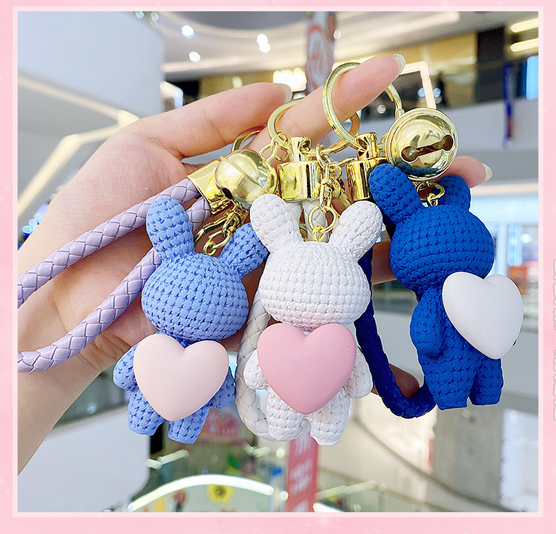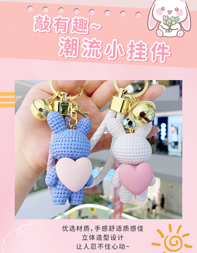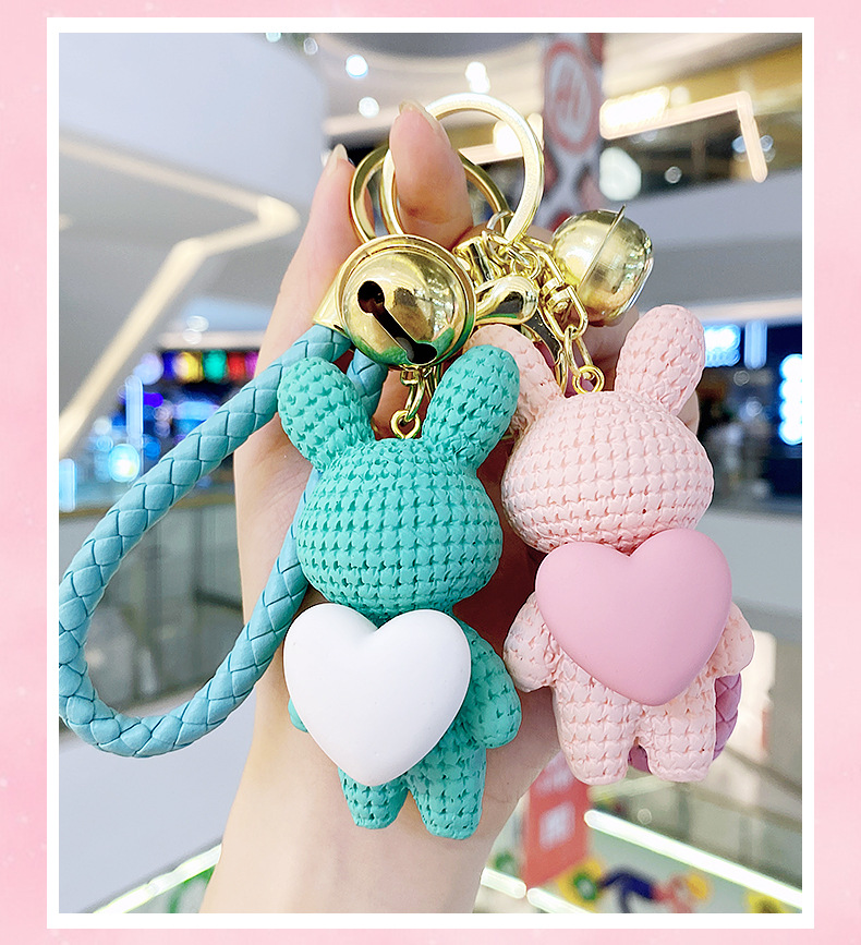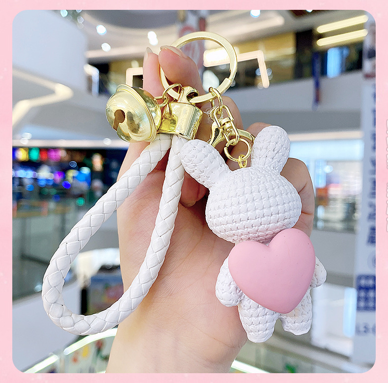 Resina creativa melocotón corazón tejido amor conejo llavero al por mayor ins pareja escuela coche llavero colgante