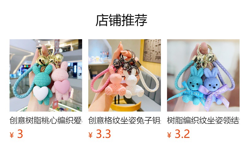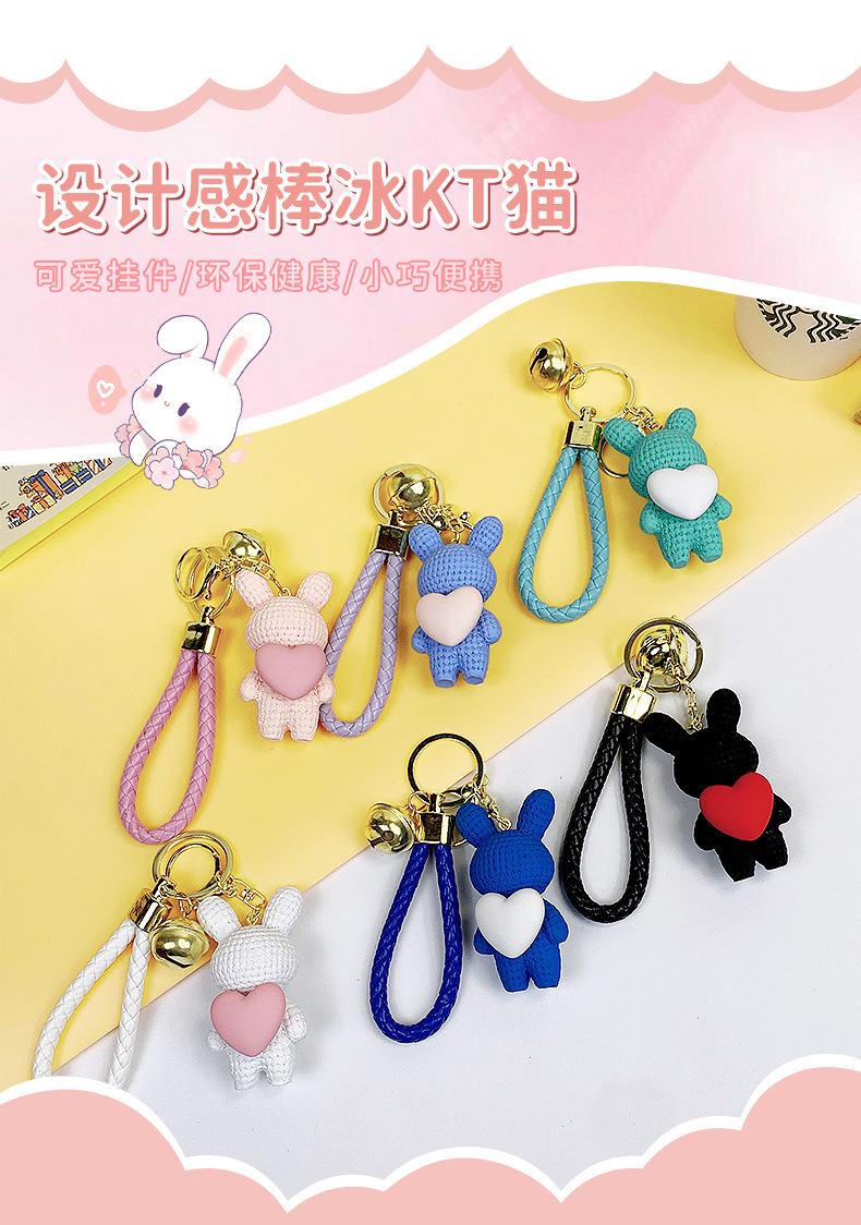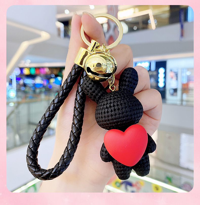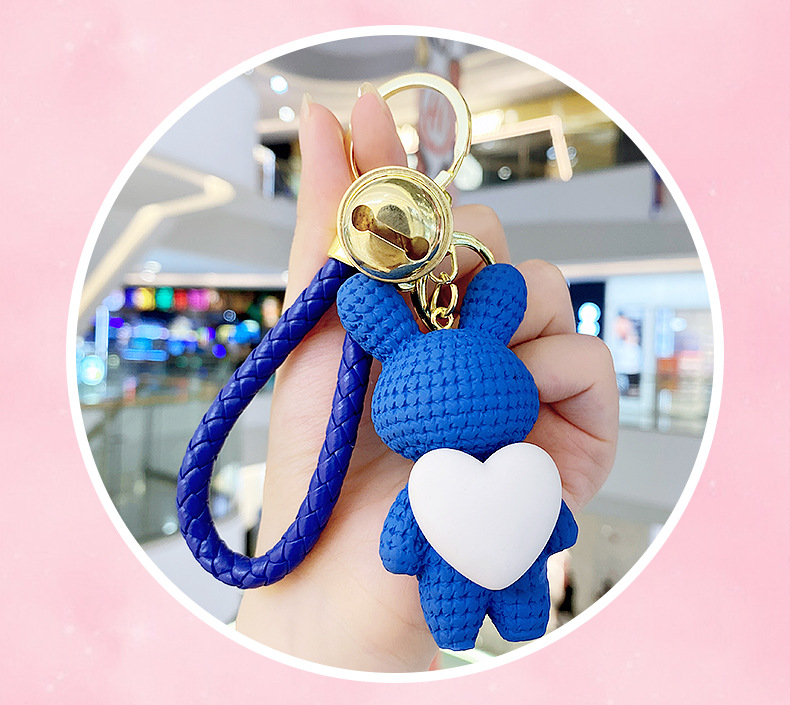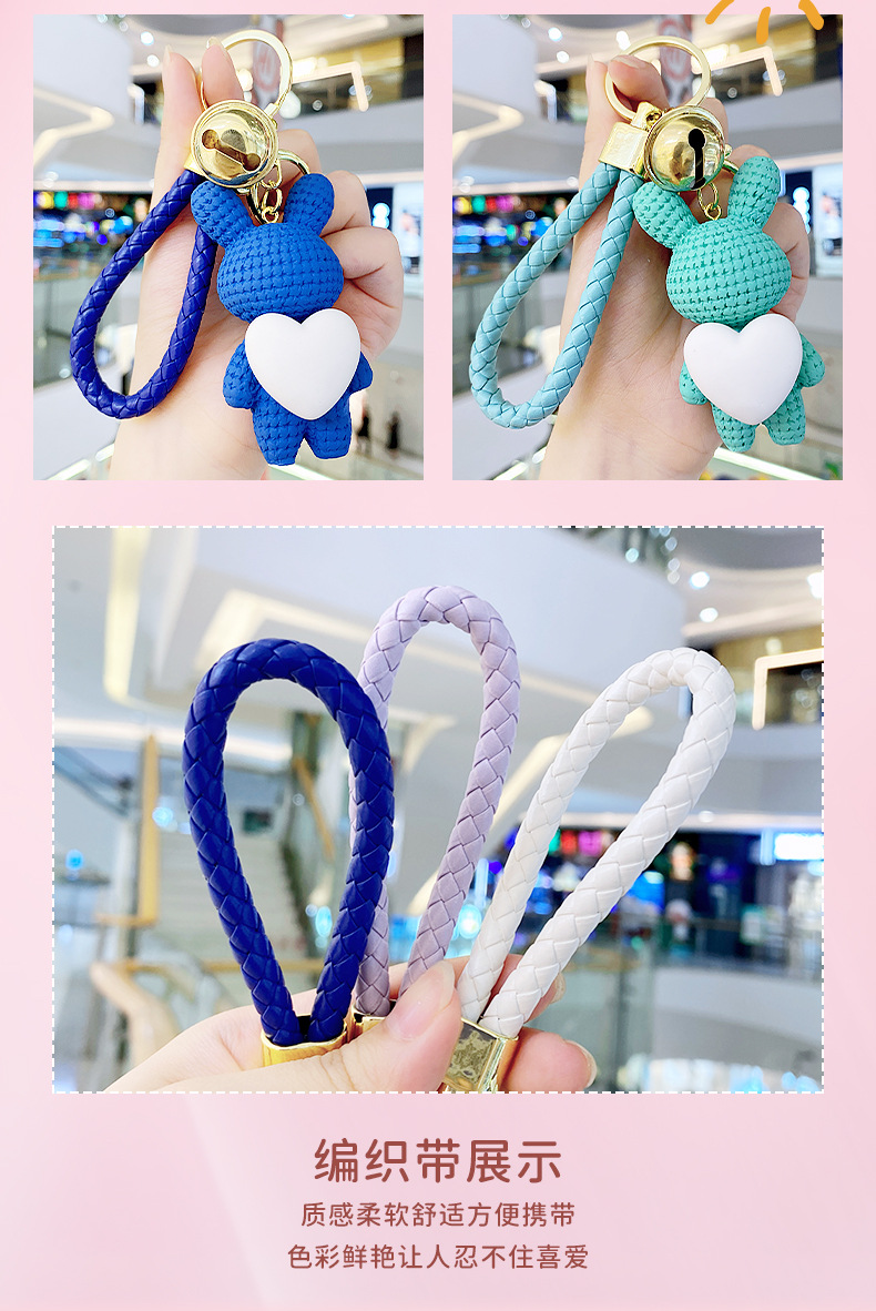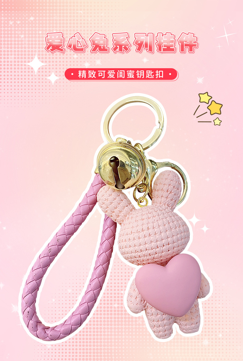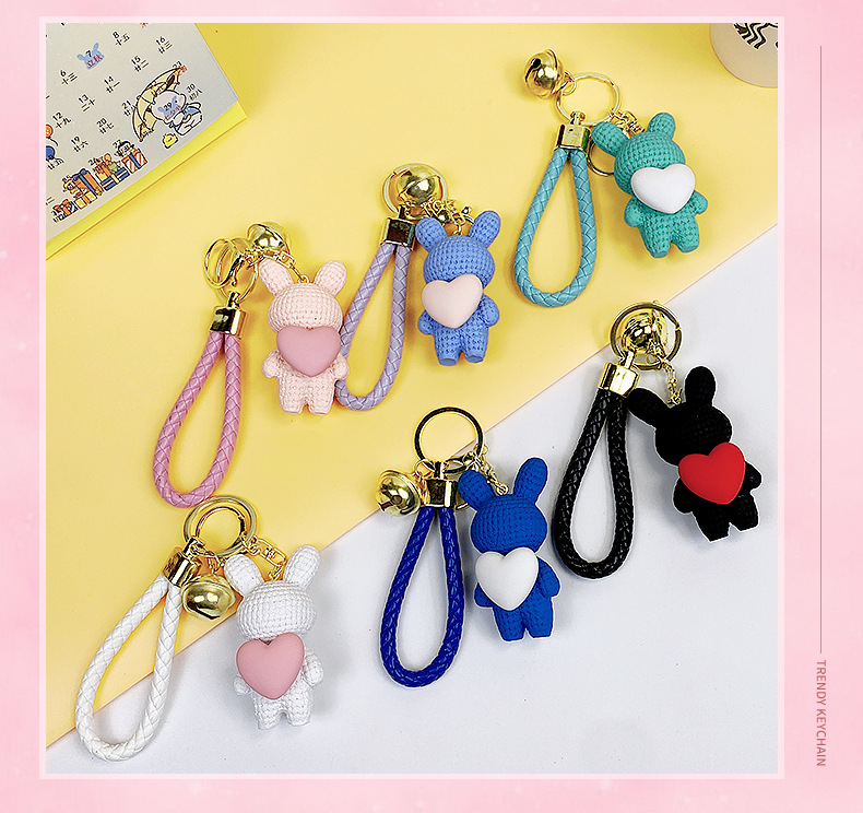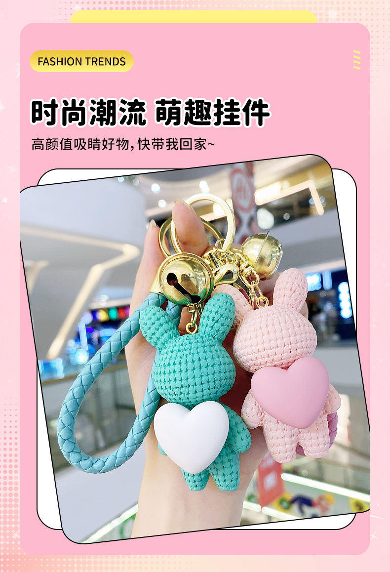 Resina creativa melocotón corazón tejido amor conejo llavero al por mayor ins pareja escuela coche llavero colgante