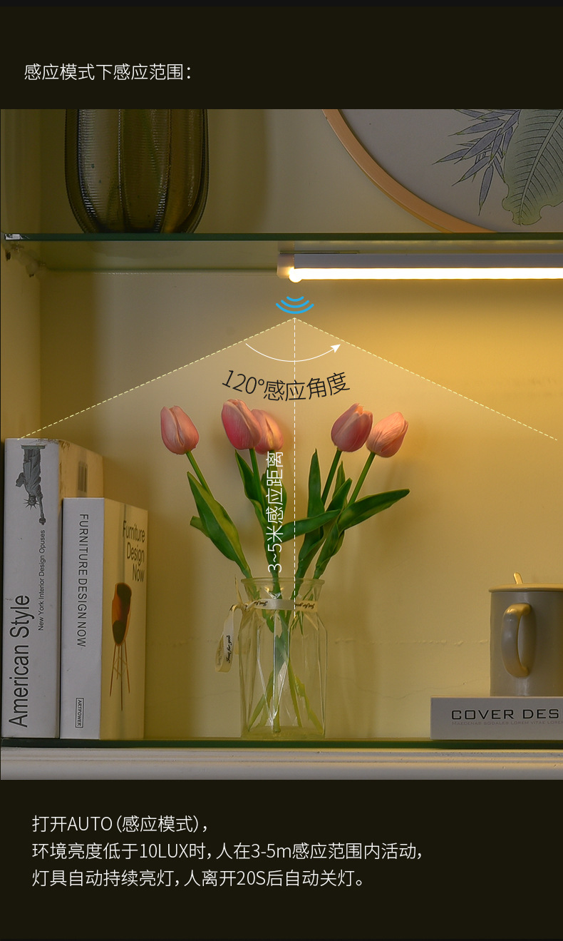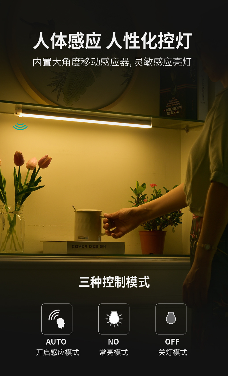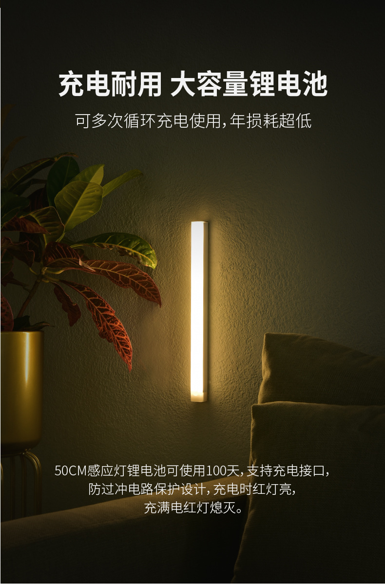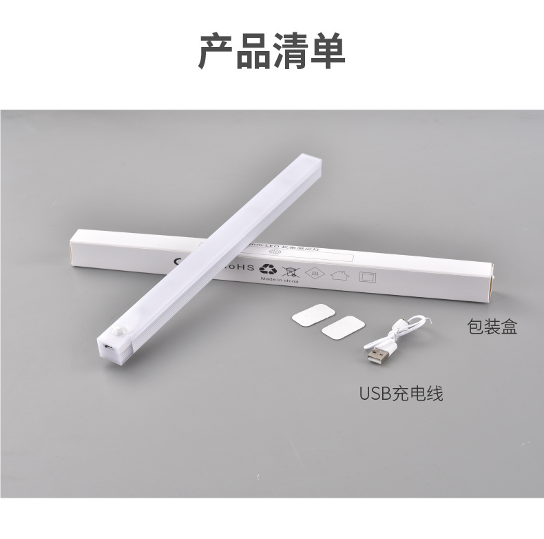 LED de inducción del cuerpo humano inteligente inalámbrico magnético tira de luz de noche recargable cocina armario luz tira de luz