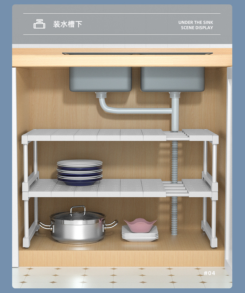 Estante divisorio para armario, estante de almacenamiento de pie, estante de almacenamiento debajo del fregadero de la cocina, estante de almacenamiento.