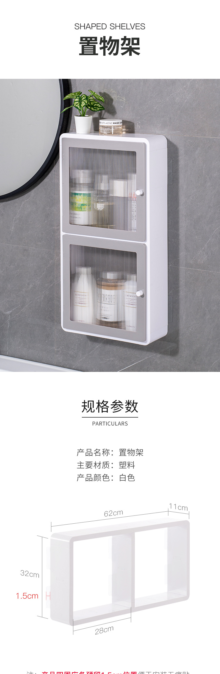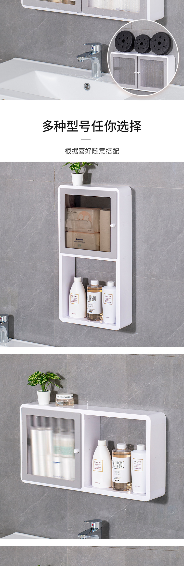 Estante de almacenamiento para el baño, a prueba de polvo e impermeable, sin perforaciones, almacenamiento de maquillaje de plástico, gabinete de almacenamiento para el baño multicapa a prueba de humedad