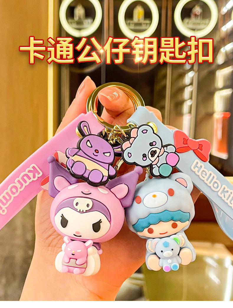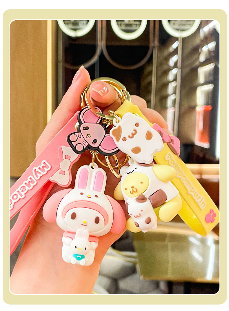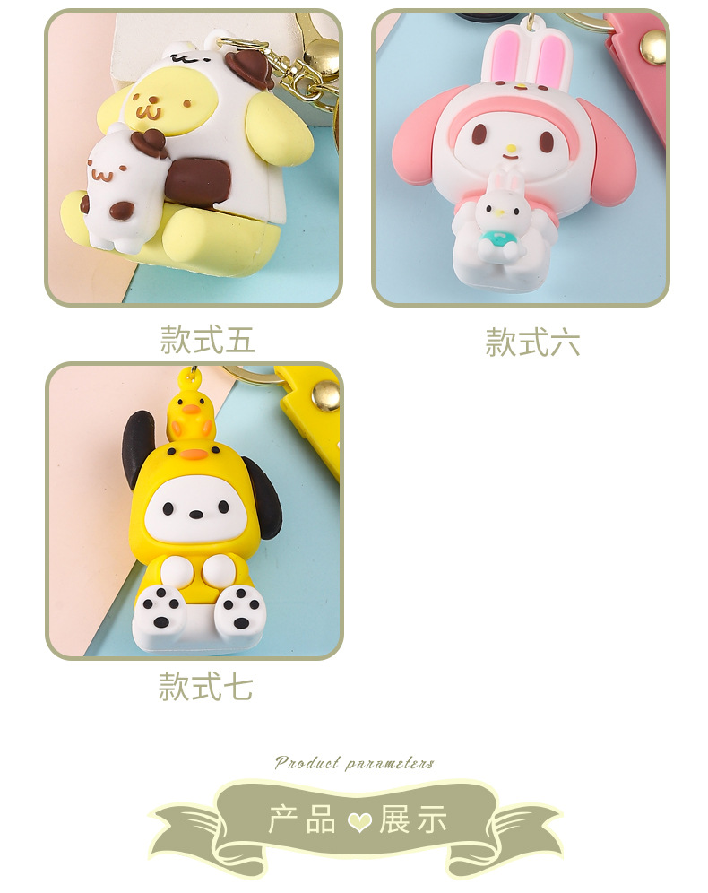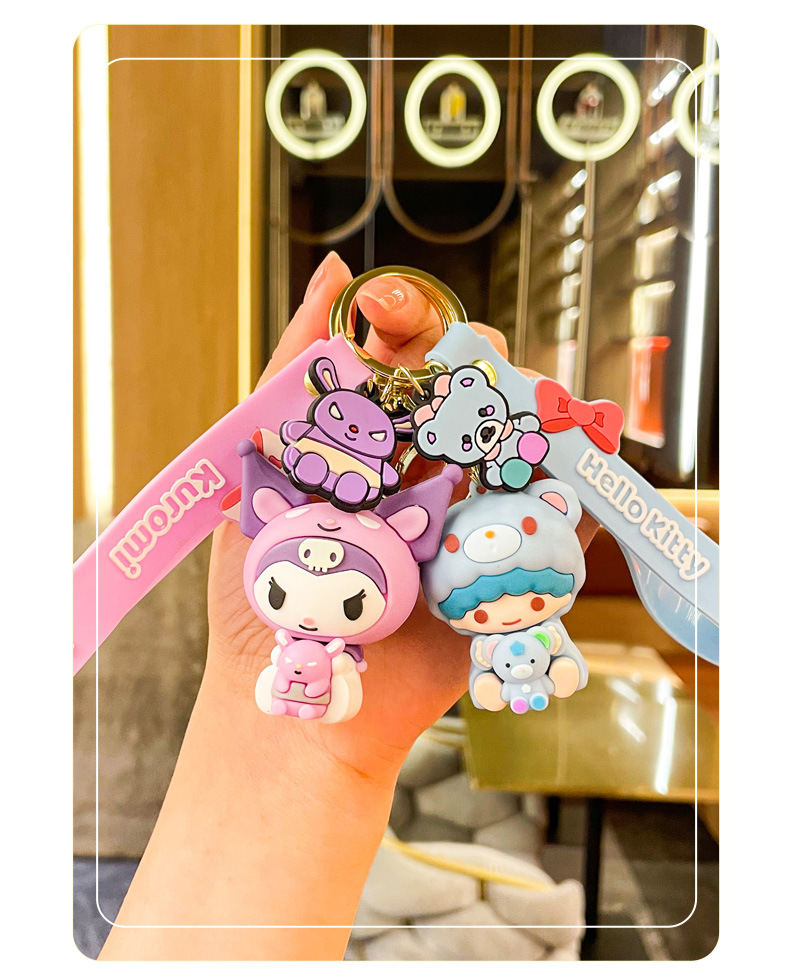 Sanrio sosteniendo pequeño animal llavero muñeca bolsa colgante ciego caja llavero muñeca máquina empuje pequeño regalo al por mayor
