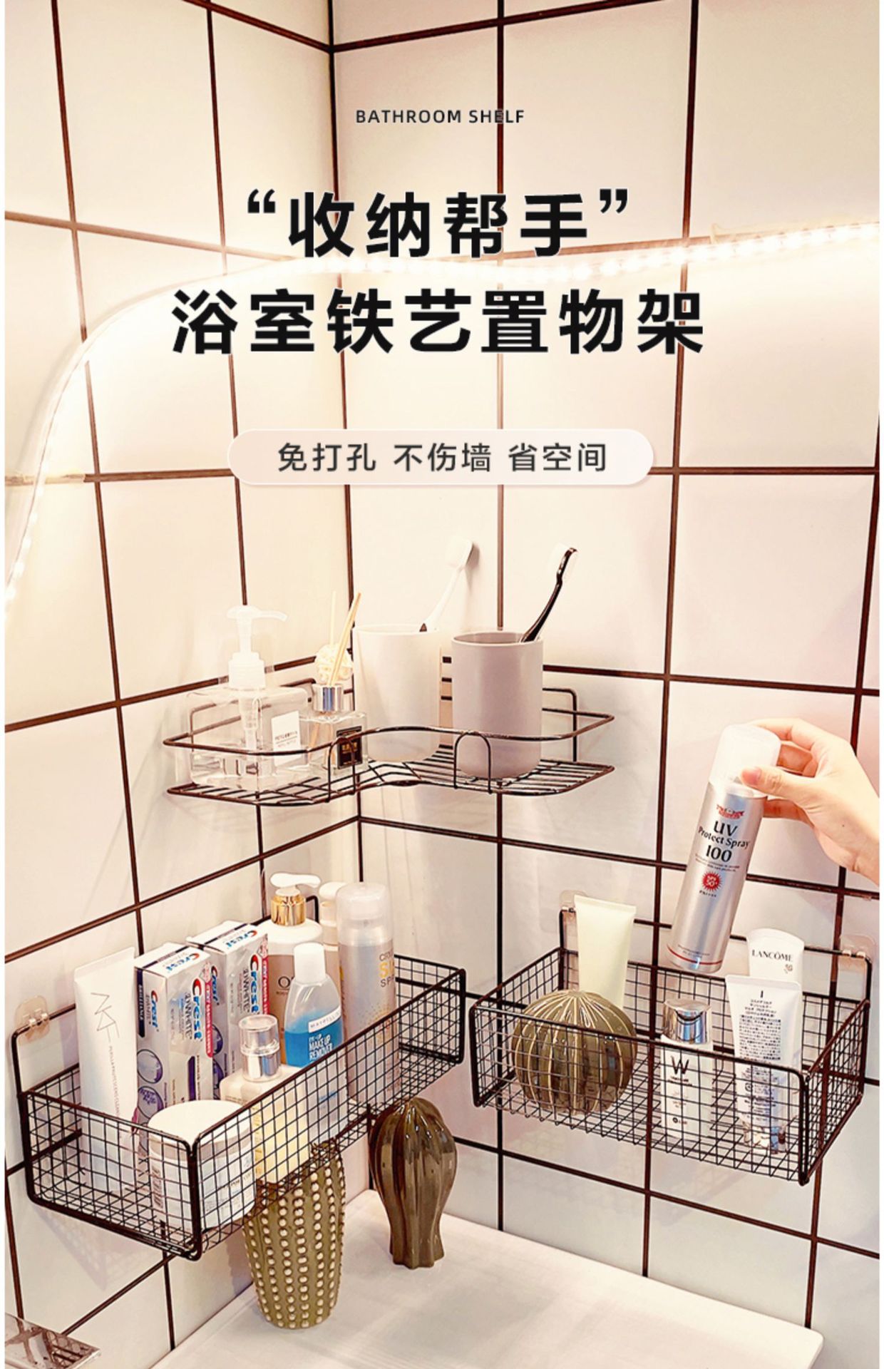 Estante de almacenamiento de baño Baño montado en la pared sin perforaciones baño inodoro lavabo pared rack de almacenamiento
