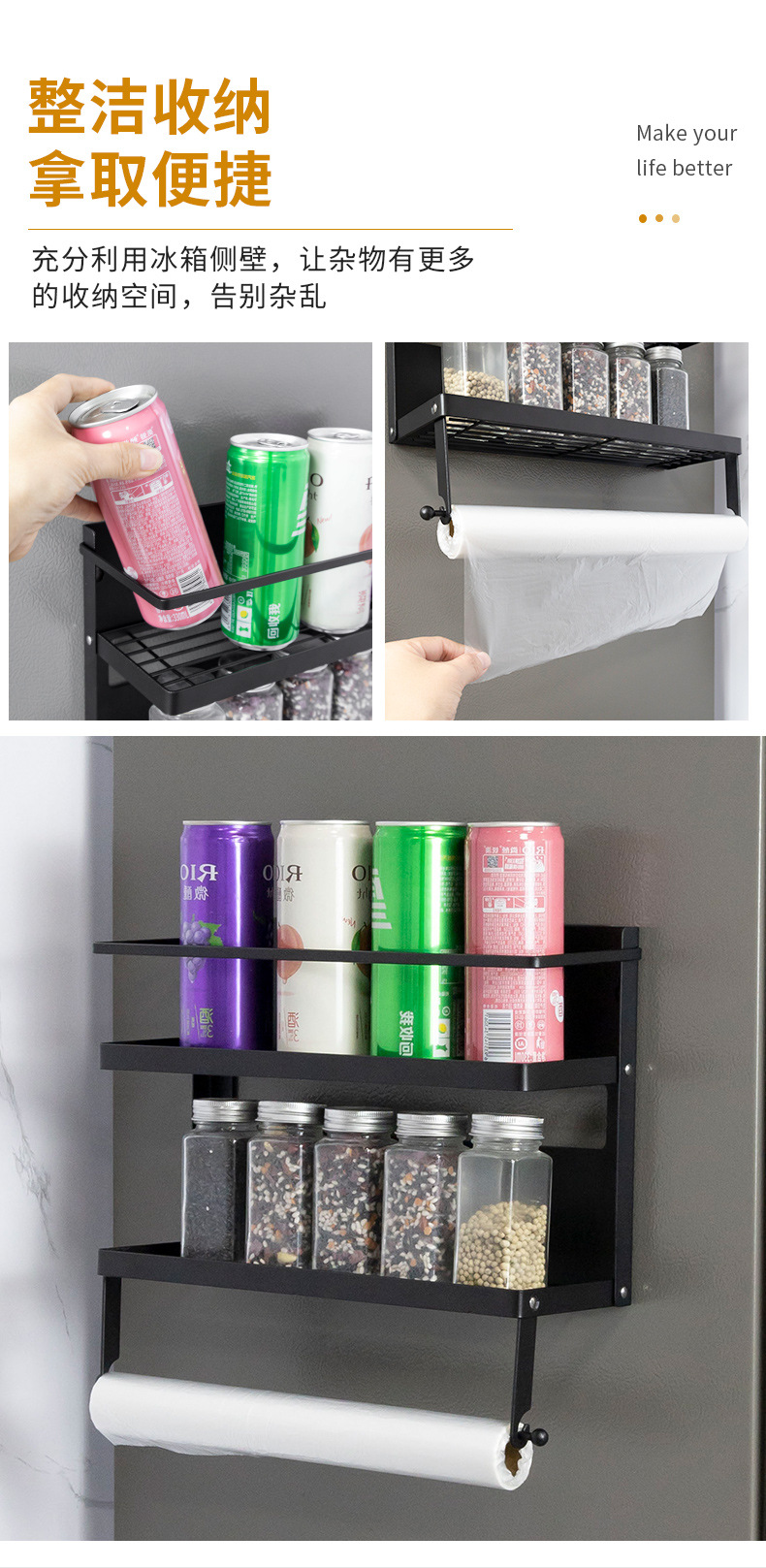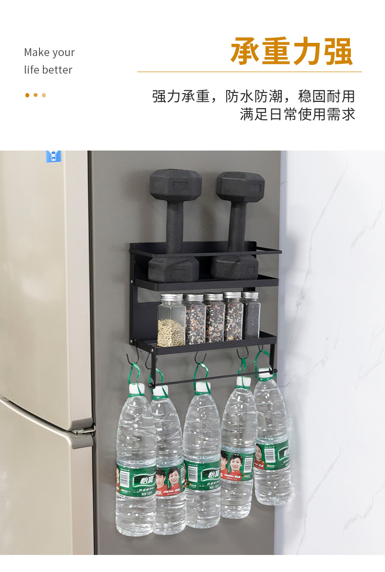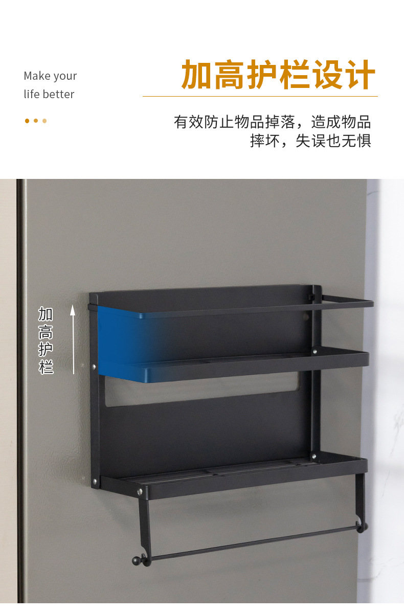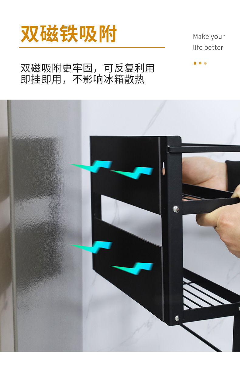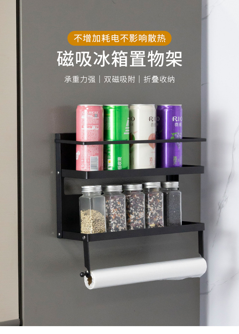 Multifuncional estilo japonés plegable refrigerador magnético estante de almacenamiento lateral estante de almacenamiento multicapa estante de la cocina montado en la pared sin perforar