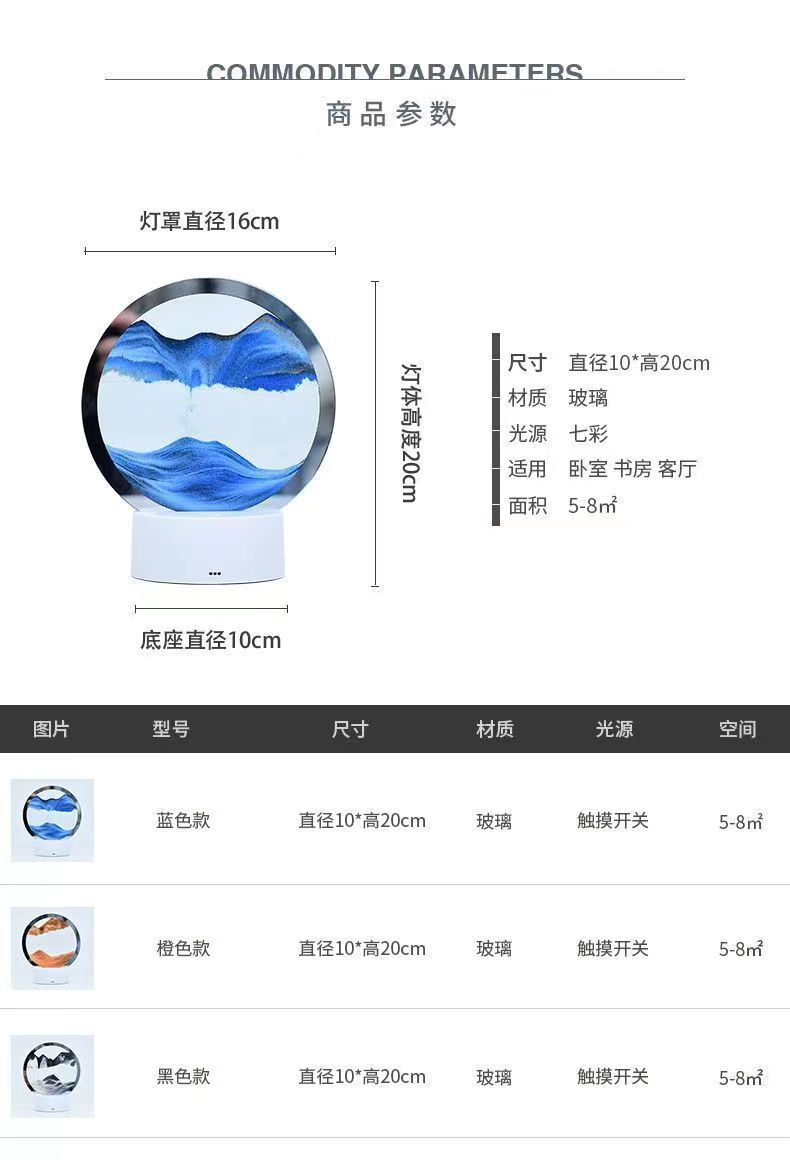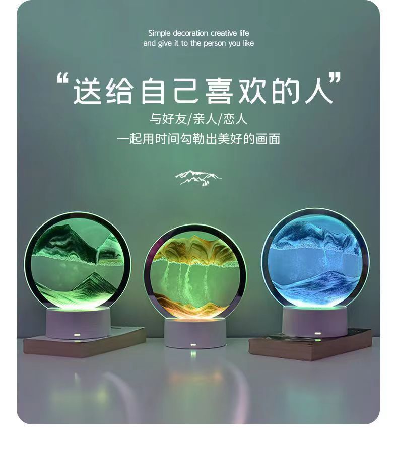 Creativo 3D Quicksand pintura noche luz dinámico reloj de arena decoración regalo de cumpleaños regalo hogar escritorio Decoración