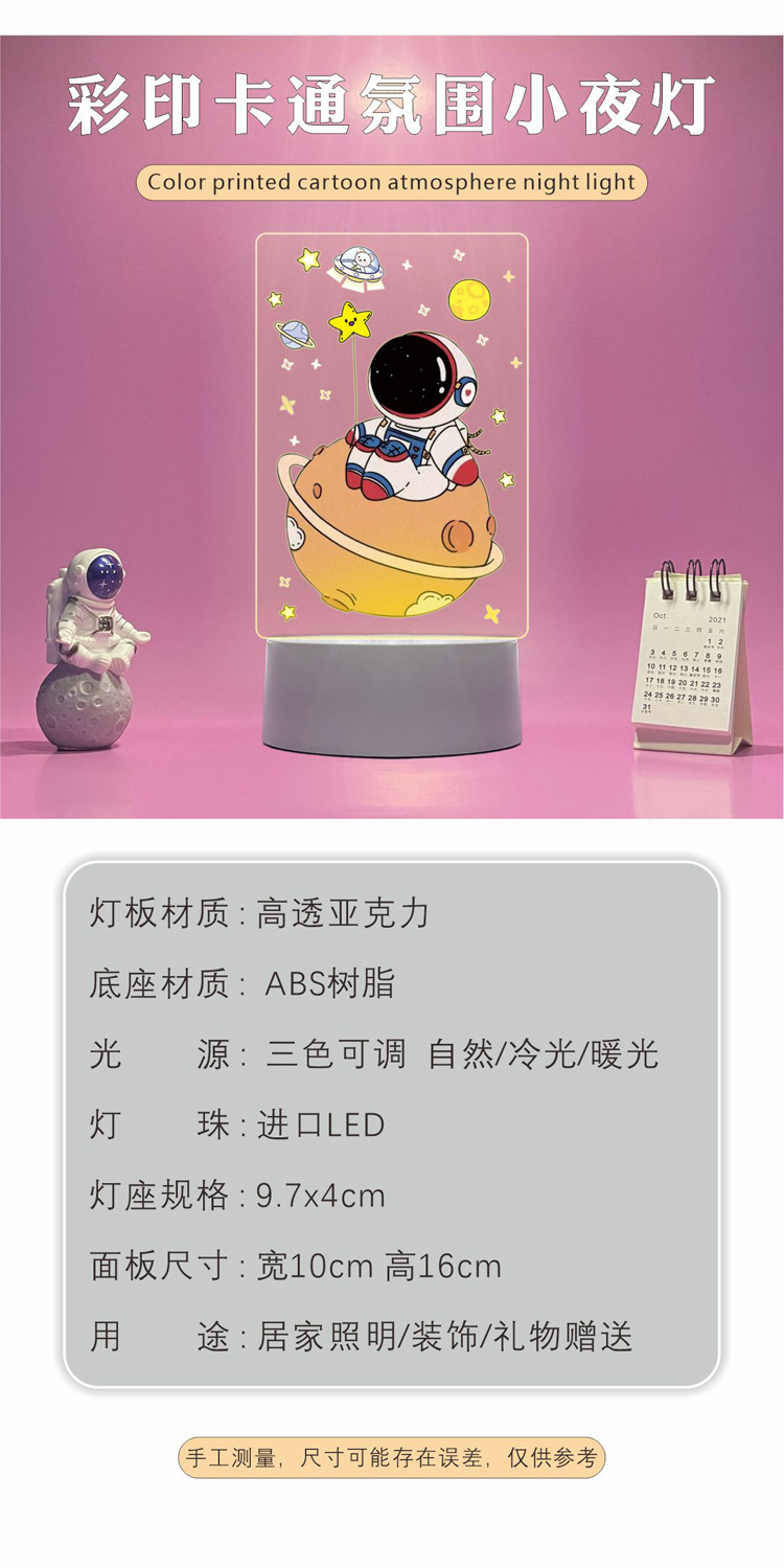 | Color de luz | Impresión en color astronauta tipo A,Impresión en color astronauta B,Impresión en color astronauta tipo C,Astronauta D de la impresión en color |