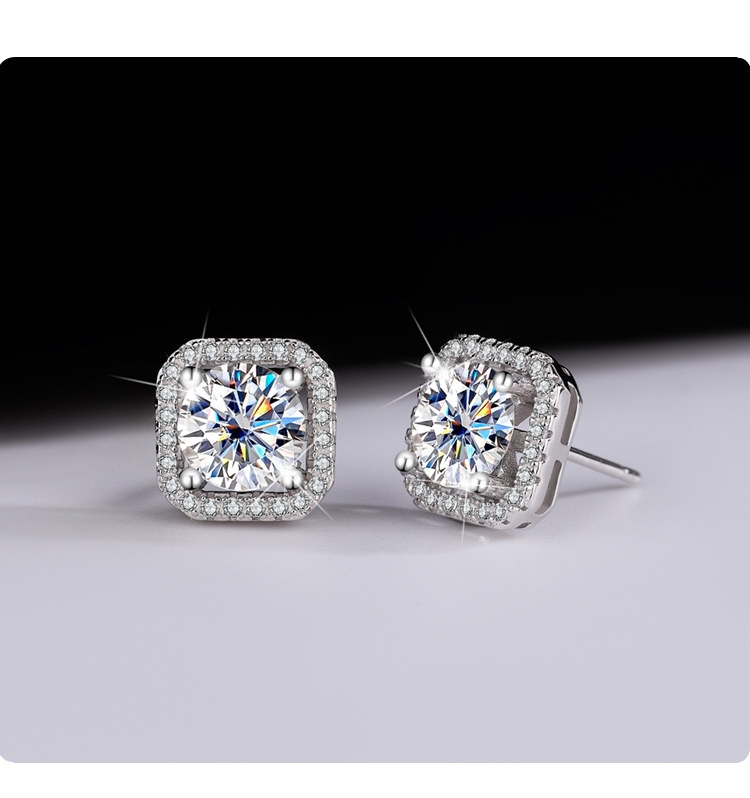 S925 plata esterlina bienes genuinos diamante cuadrado bolsa Stud pendientes temperamento femenino simple moissanite regalo joyería del oído suministro en vivo