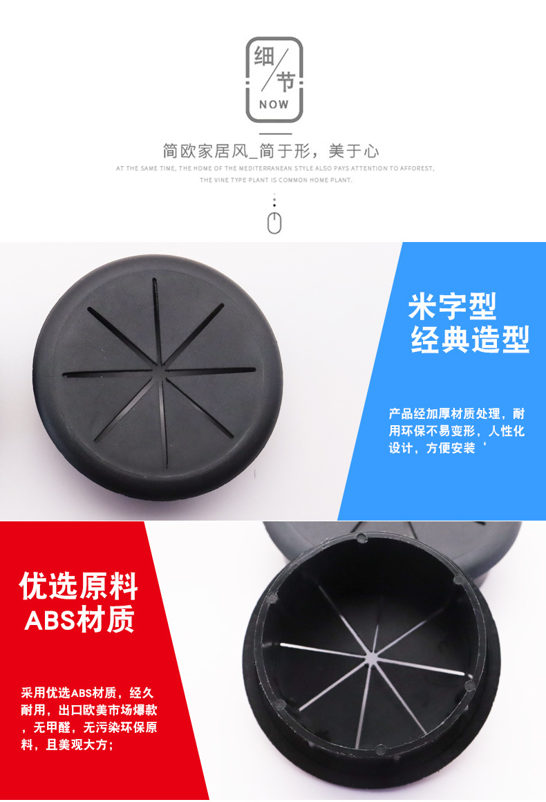 ZUFFA Zhu FA en stock muebles de oficina ordenador escritorio agujero cubierta ABS plástico en forma de arroz octogonal redondo roscado caja cubierta