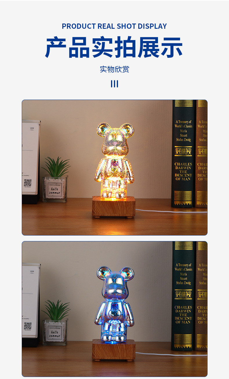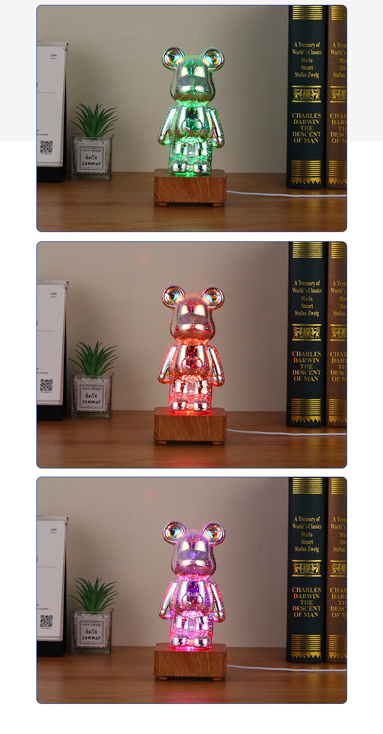 3D vidrio fuegos artificiales oso diy colorido luminoso atmósfera dormitorio luz de la noche internet celebridad luz de la noche tiktok mismo regalo