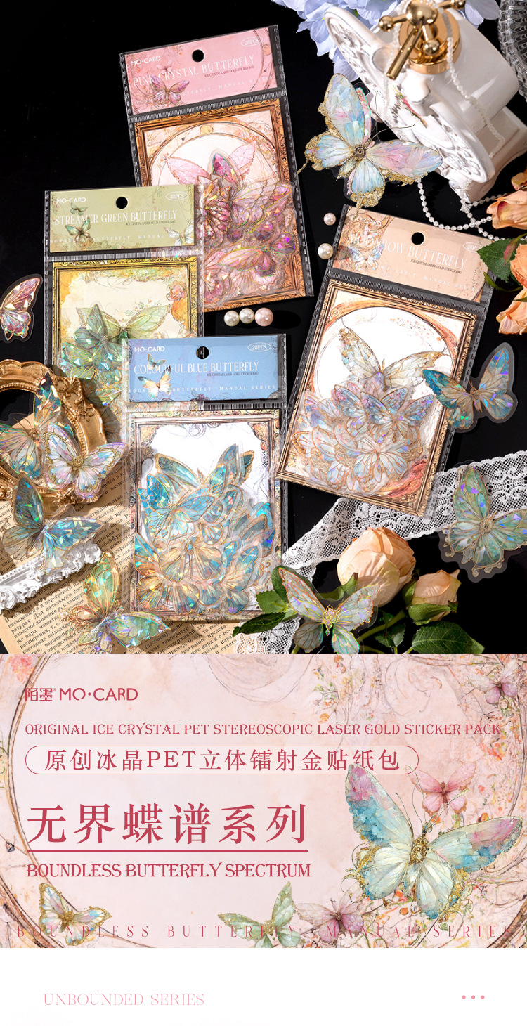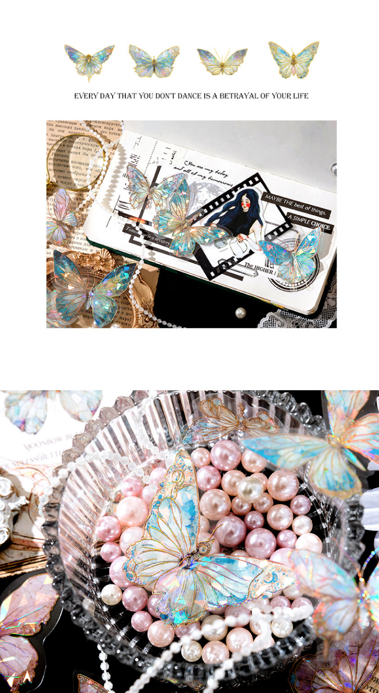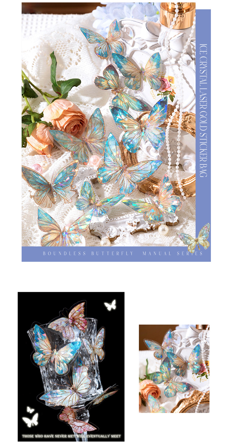Mo Paquete de etiqueta engomada del ANIMAL DOMÉSTICO serie de espectro mariposa sin límites tridimensional Cristal de hielo láser de oro INS estilo mariposa Diario etiqueta engomada de la tarjeta de Goo