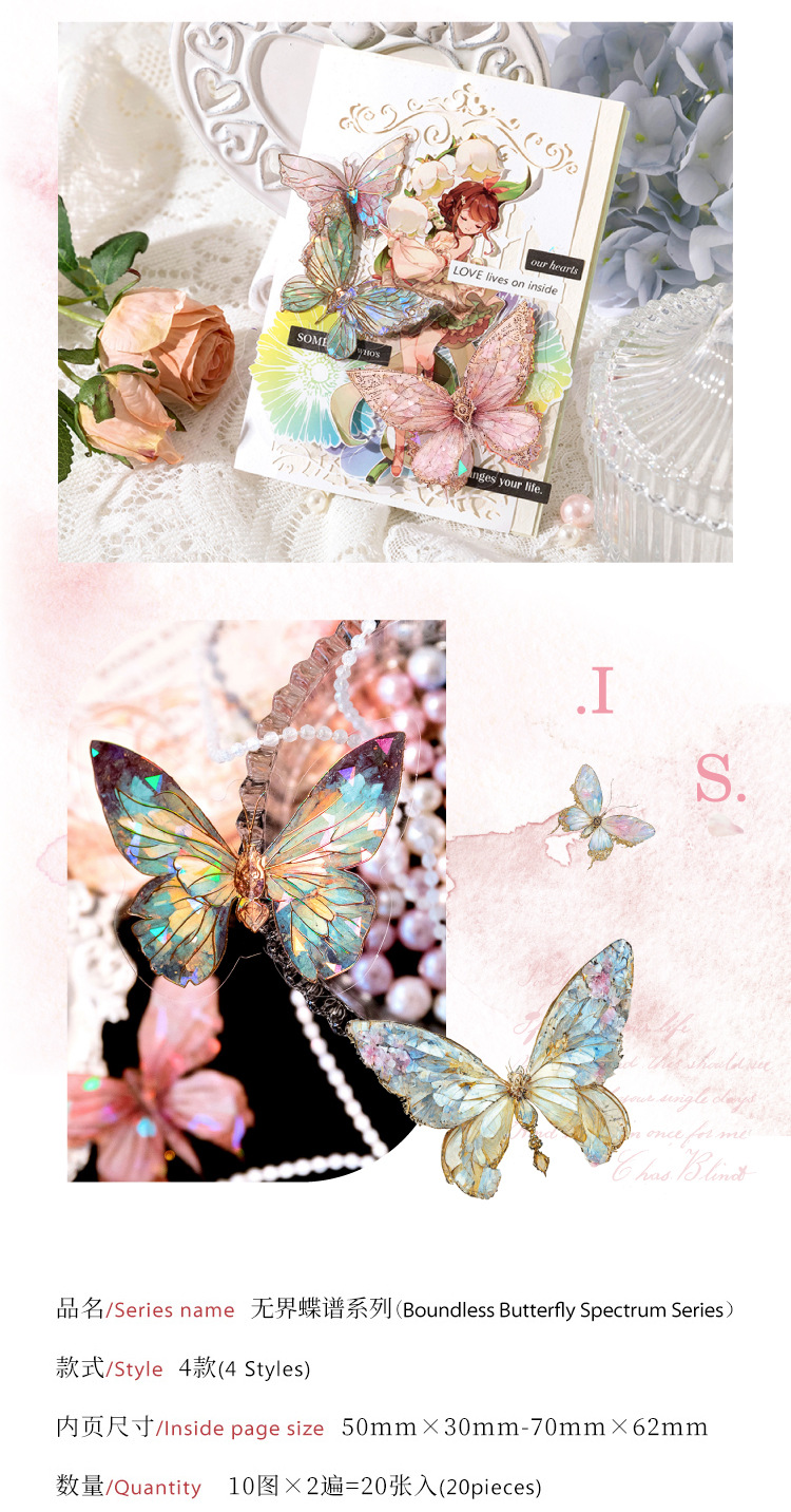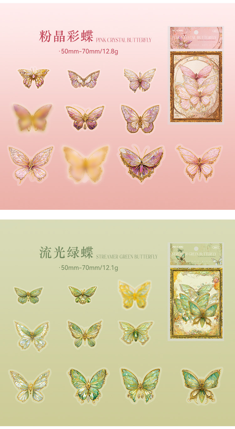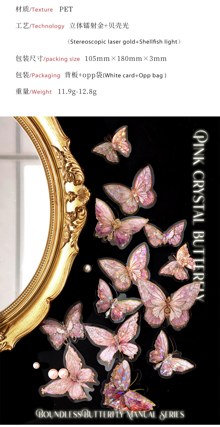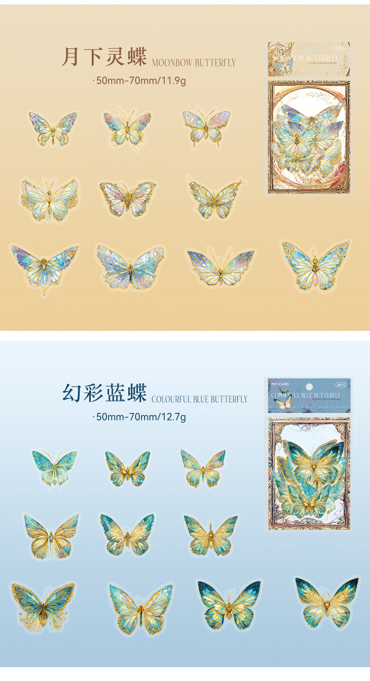 Mo Paquete de etiqueta engomada del ANIMAL DOMÉSTICO serie de espectro mariposa sin límites tridimensional Cristal de hielo láser de oro INS estilo mariposa Diario etiqueta engomada de la tarjeta de Goo