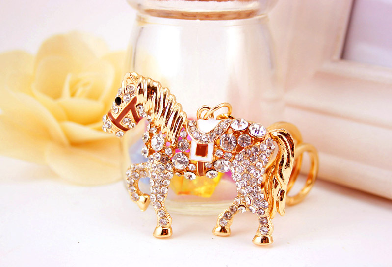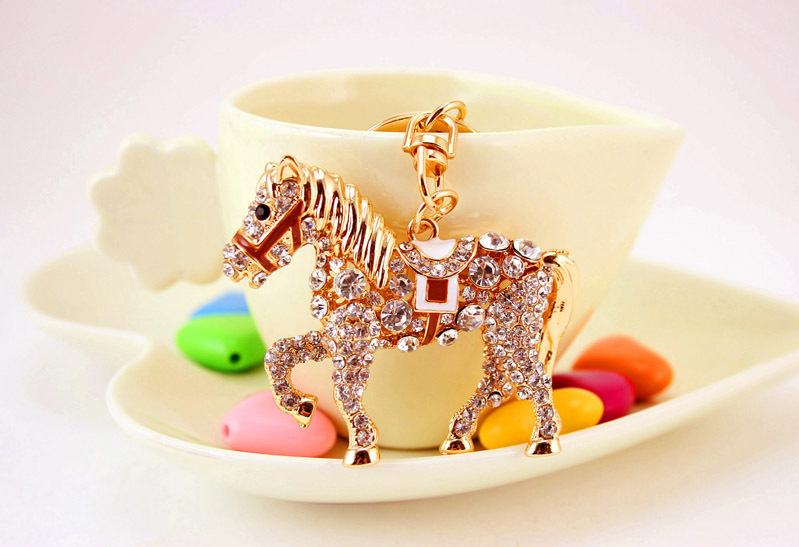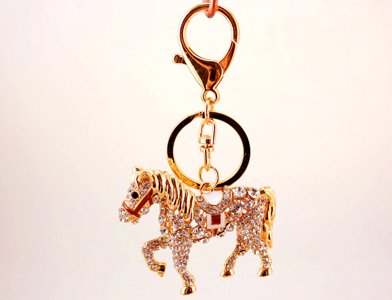 Llavero del zodiaco con diseño de pony y diamantes incrustados, accesorio de coche o bolso, pequeño regalo decorativo