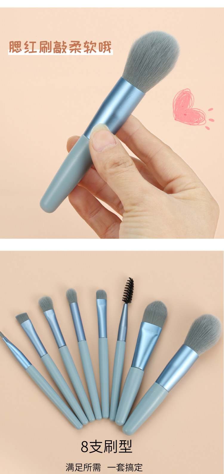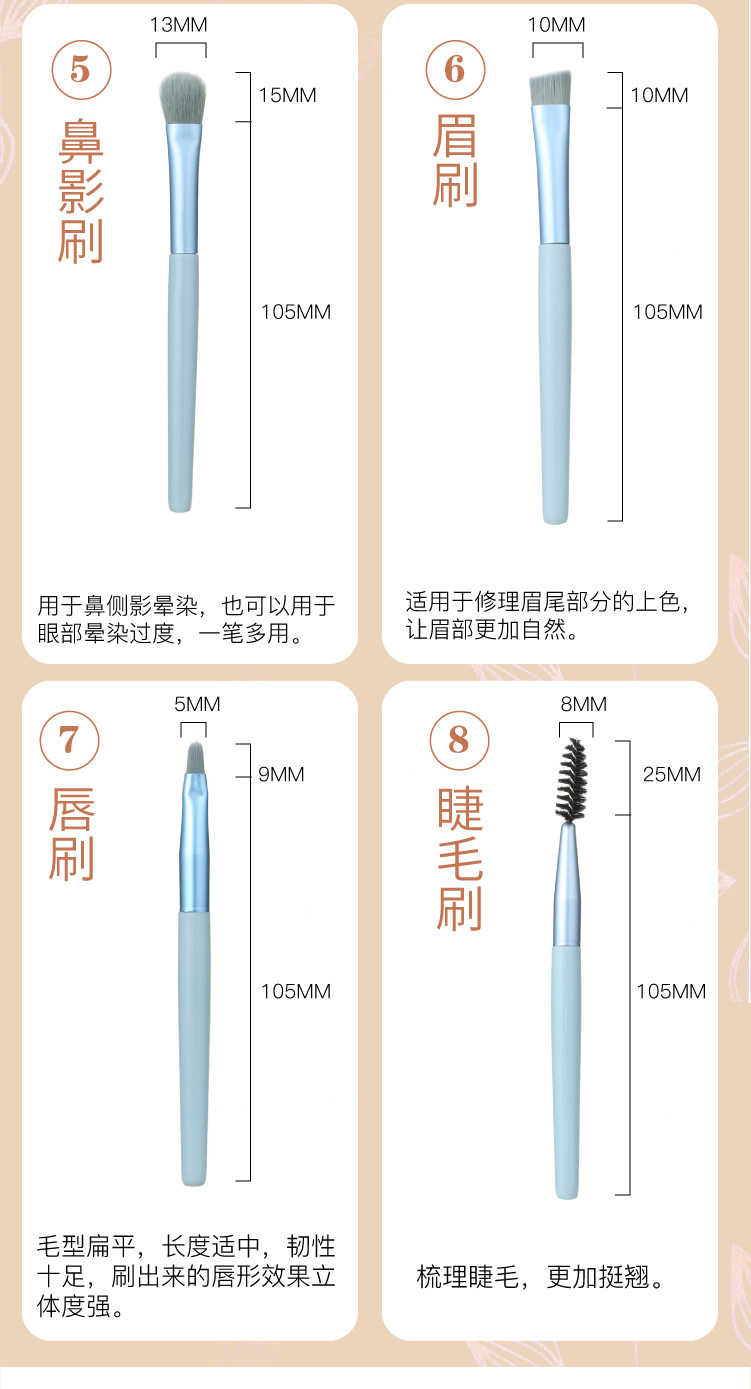Nuevo Mini 8 pinceles de maquillaje conjunto de cepillo de sombra de ojos cepillo de pestañas se ruboriza cepillo suelto cepillo de maquillaje ventas directas de fábrica