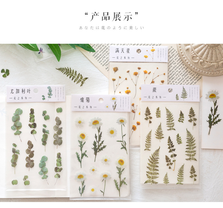 Sr. Papel PET pegatinas planas flor serie pequeño fresco diario decoración Mo Yan material vegetal DIY pegatinas