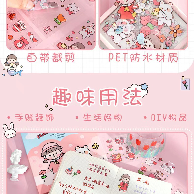 50 piezas de cuenta de mano no repetida pegatinas de dibujos animados lindo transparente pegatinas impermeables pegatinas de tarjeta Goo creativa traje al por mayor