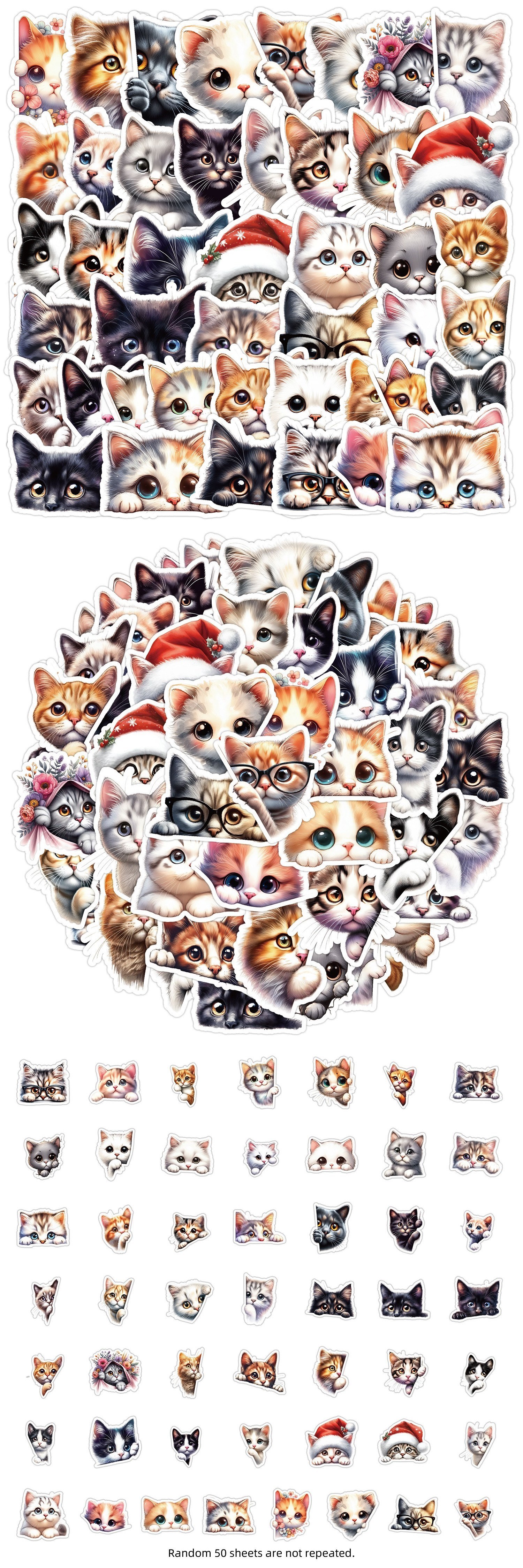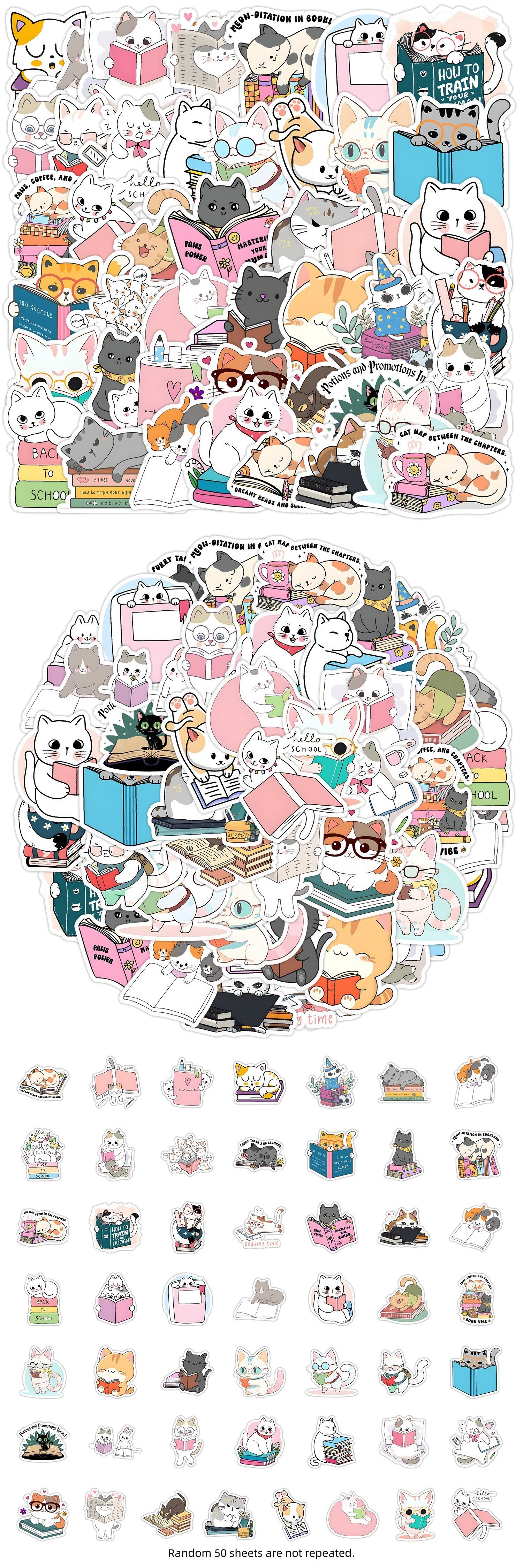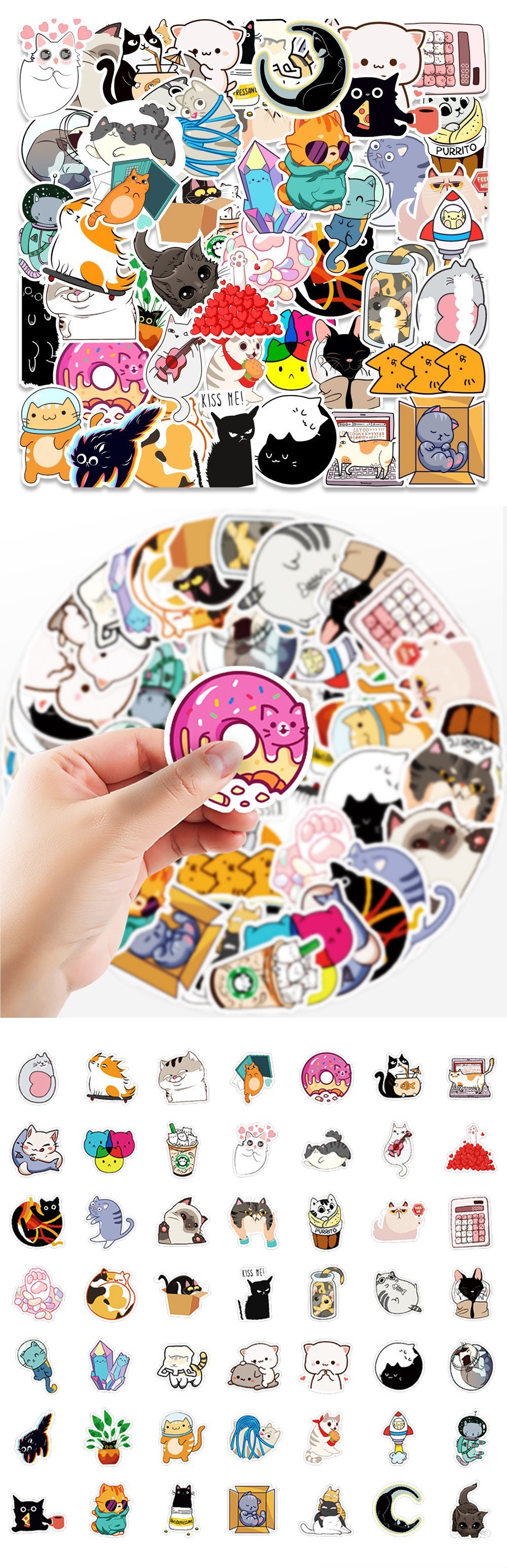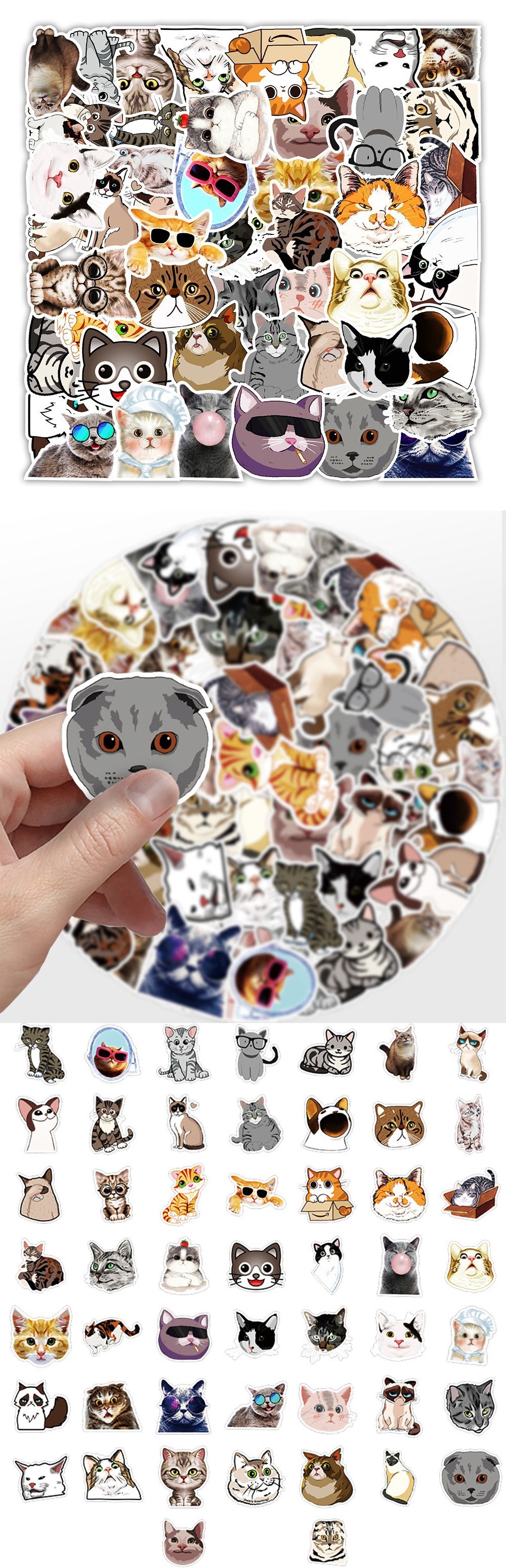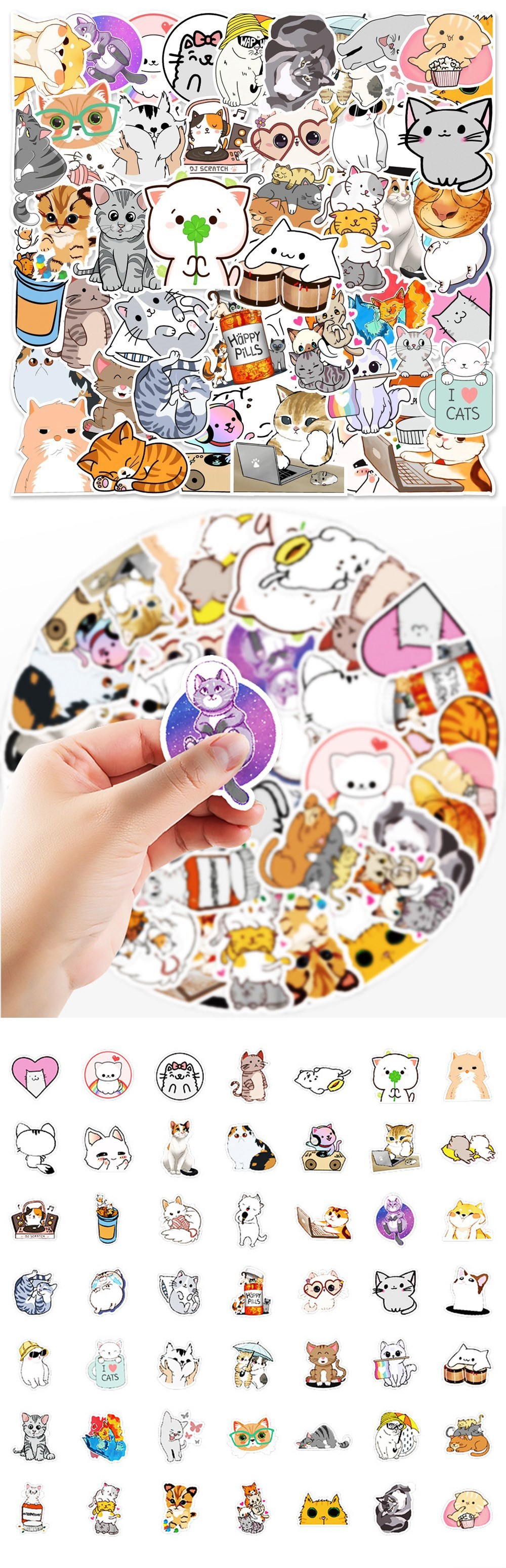 50 lindo gatito pegatinas de dibujos animados ordenador portátil teléfono taza de agua pegatinas cuaderno Diario pegatinas a prueba de agua